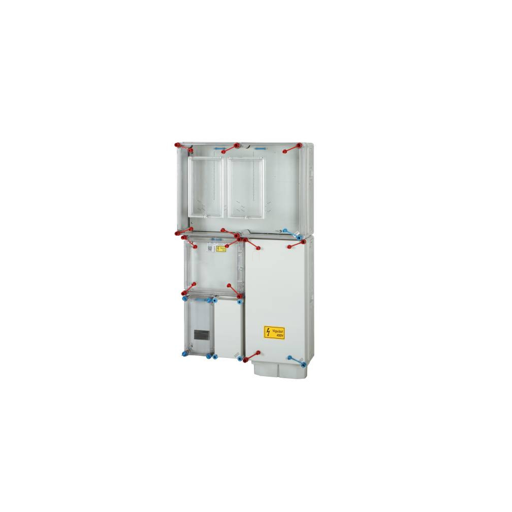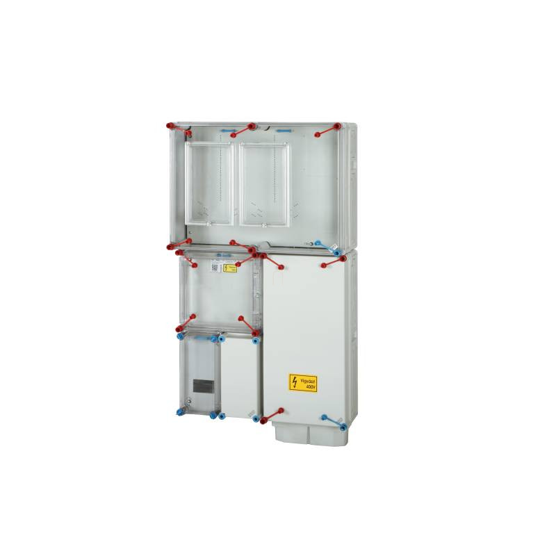 Hensel HB33K0F4-U fogyasztásmérő szekrény, 1 vagy 3 fázisú általános és vezérelt mérők számára, földkábeles csatlakozás, 4 modulos kiselosztó 80A mindennapszaki és 32A vezérelt/ 63A H-tarifa