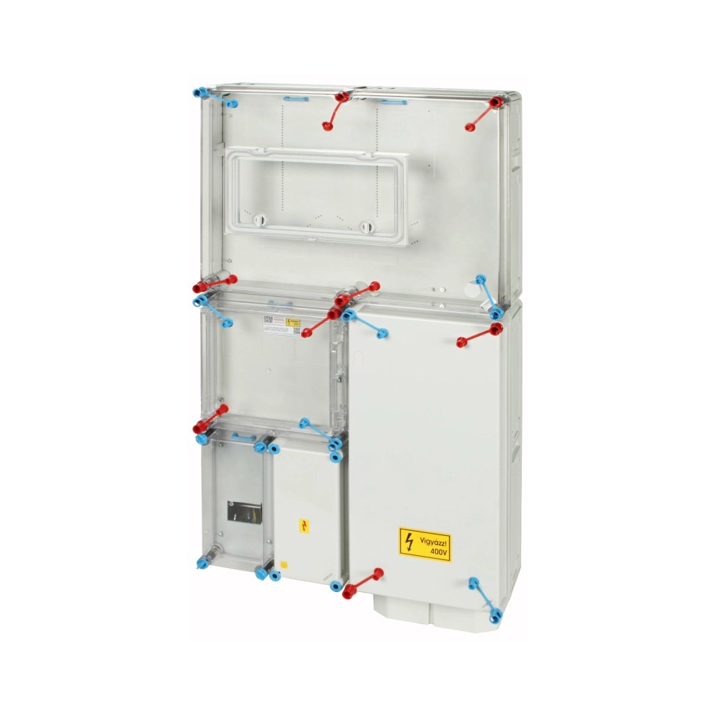Hensel HB33K0F4-U1 fogyasztásmérő szekrény, 1 vagy 3 fázisú általános és vezérelt mérők számára, földkábeles csatlakozás, 4 modulos kiselosztó 80A mindennapszaki és 32A vezérelt/ 63A H-tarifa