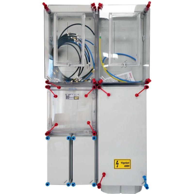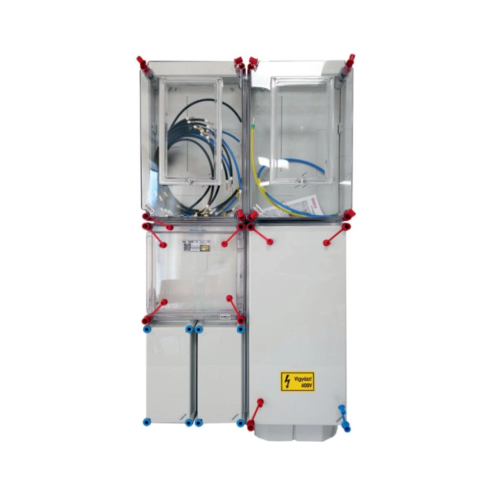 Hensel HB33KHF-U fogyasztásmérő szekrény, 1 vagy 3 fázisú általános és H-tarifás mérők számára, földkábeles csatlakozás 80A mindennapszaki és 63A H-tarifa