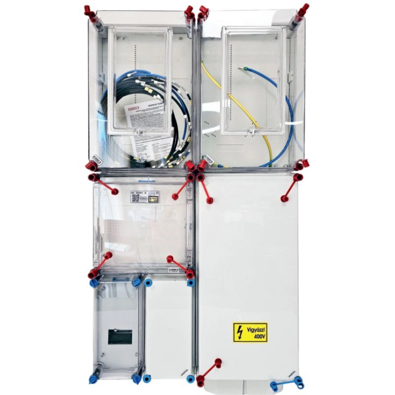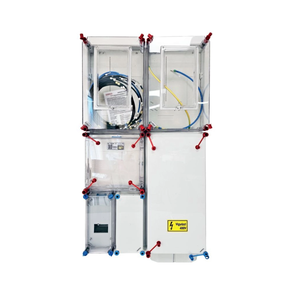 Hensel HB33KHF4-U fogyasztásmérő szekrény, 1 vagy 3 fázisú általános és H-tarifás mérők számára, földkábeles csatlakozás, 4 modulos kiselosztó 80A mindennapszaki és 63A H-tarifa