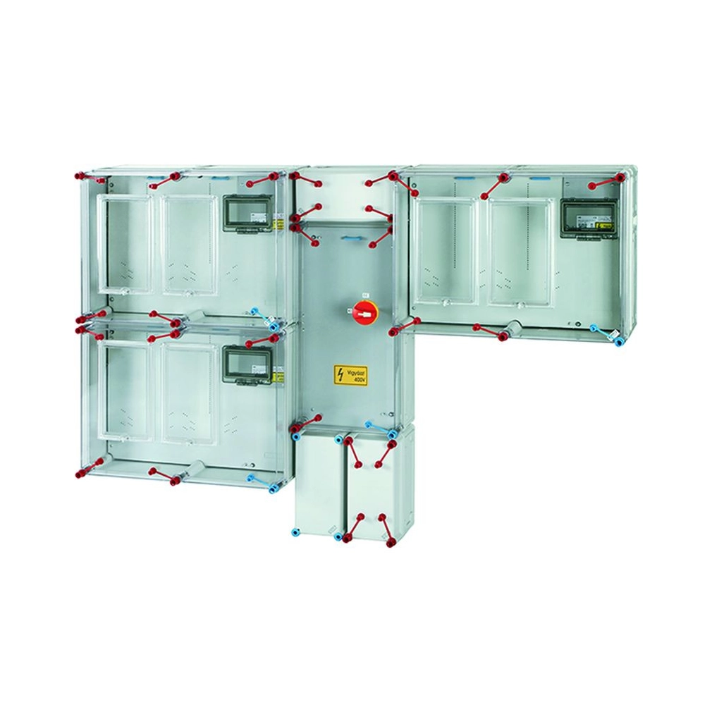 Hensel HCS432 csoportos mérőhely, 3 felhasználási hely, 1 vagy 3 fázisú általános és vezérelt és H-tarifás méréshez földkábeles csatlakozás, 80A mindennapszaki és 32A vezérelt és 63A H-tarifa /Rendszerengedély azonosító: HEN20.T060(HCS432)-K-3(M63A-V32A) Tf_Tl/