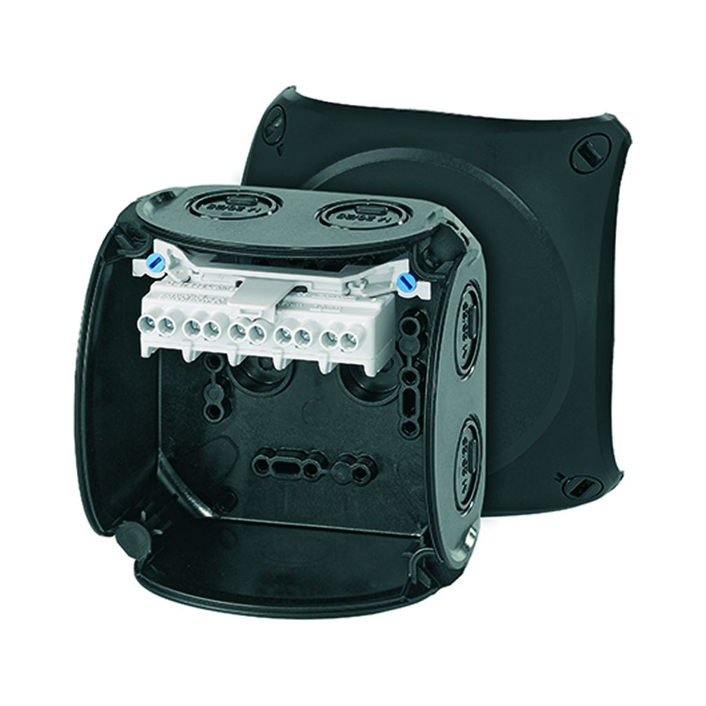 Hensel KF 0404 B Kábelösszekötő doboz kapcsokkal, 104x104x70mm IP66 fekete, időjárásálló