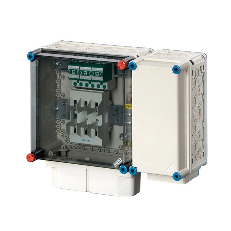 Hensel Mi-4219 Túlfeszültség védelmi szekrény T1 típus,max.50mm2, 3db OBO MC 50-B típusú túlfeszültség levezetővel