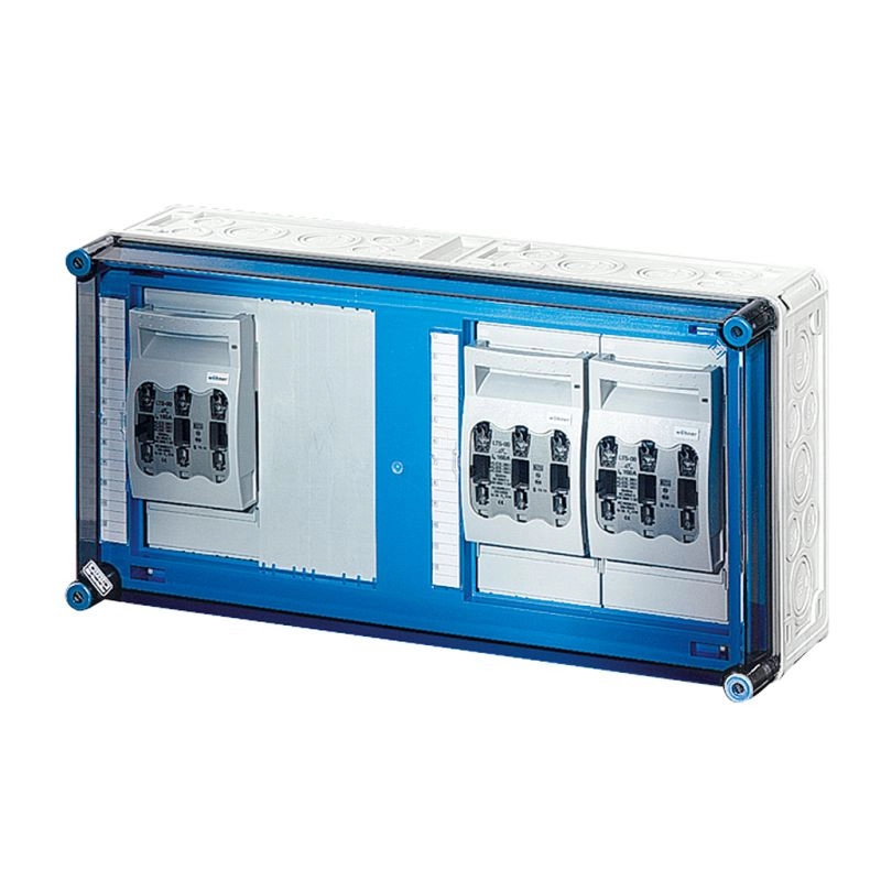 Hensel Mi-6437 NH késes szakaszolható biztosítós szekrény 3xNH00-3p, 4x35mm2, gyűjtősín 400A, 600x300x170 mm