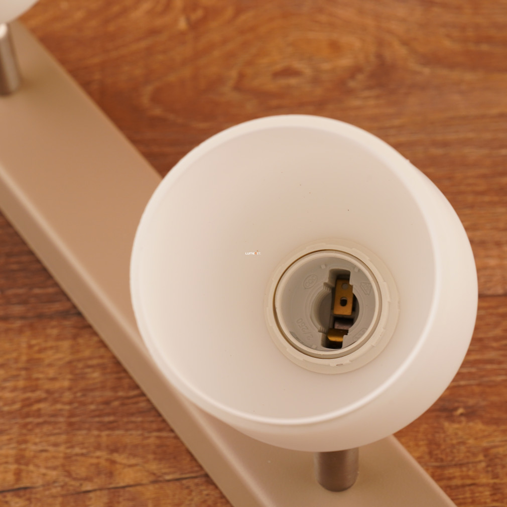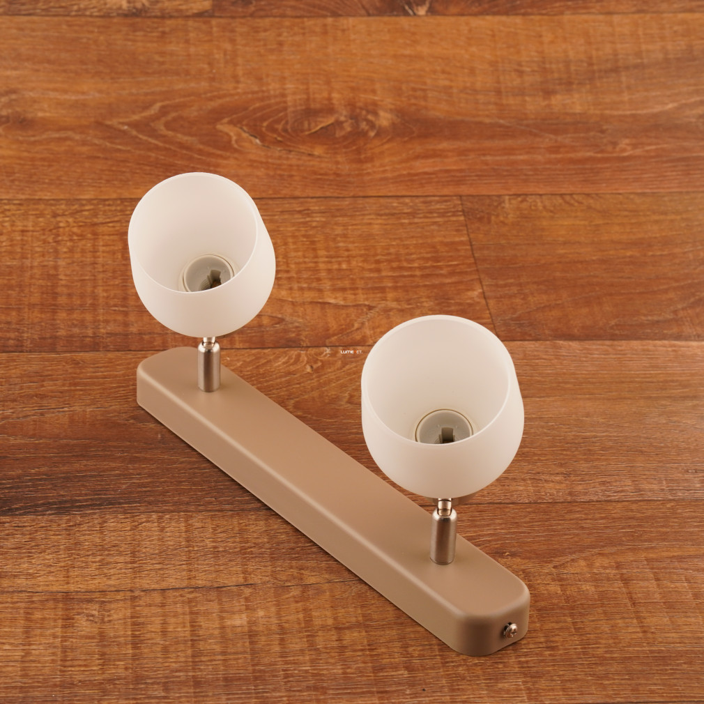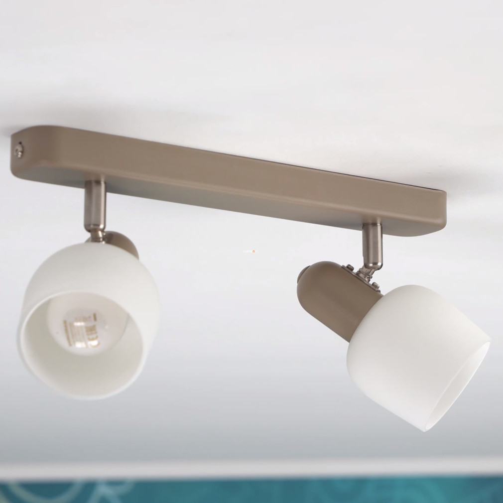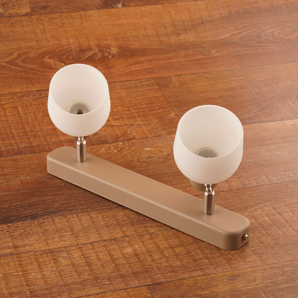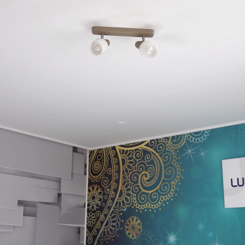 A Corato Eglo 900715 homokszínű spot lámpa két E14 foglalattal rendelkezik, amelyekbe cserélhető fényforrás helyezhető. A lámpatest acélból és üvegből készült, fehér színben, IP20 védettséggel. A termék teljes hossza 300 mm, magassága 125 mm, tömege 0,604 kg. A csomagolás méretei: 31 cm hosszú, 11 cm széles és 8 cm magas. A lámpa fényáram, fényszín, teljesítmény és színhőmérséklet tekintetében is a beépített fényforrástól függ, mivel a fényforrást nem tartalmazza. Gyártója az EGLO.