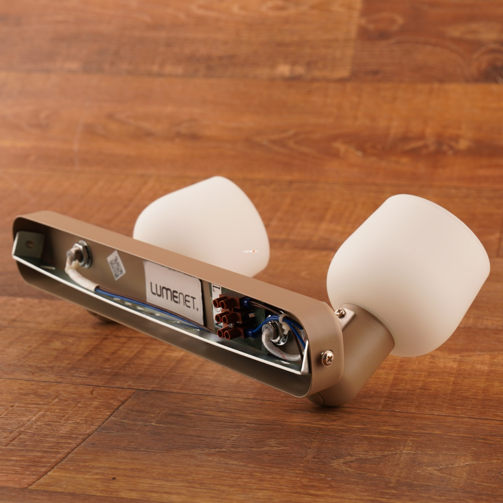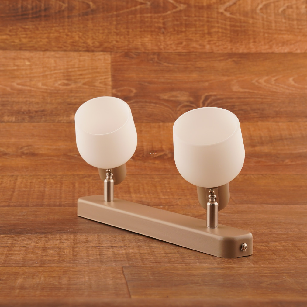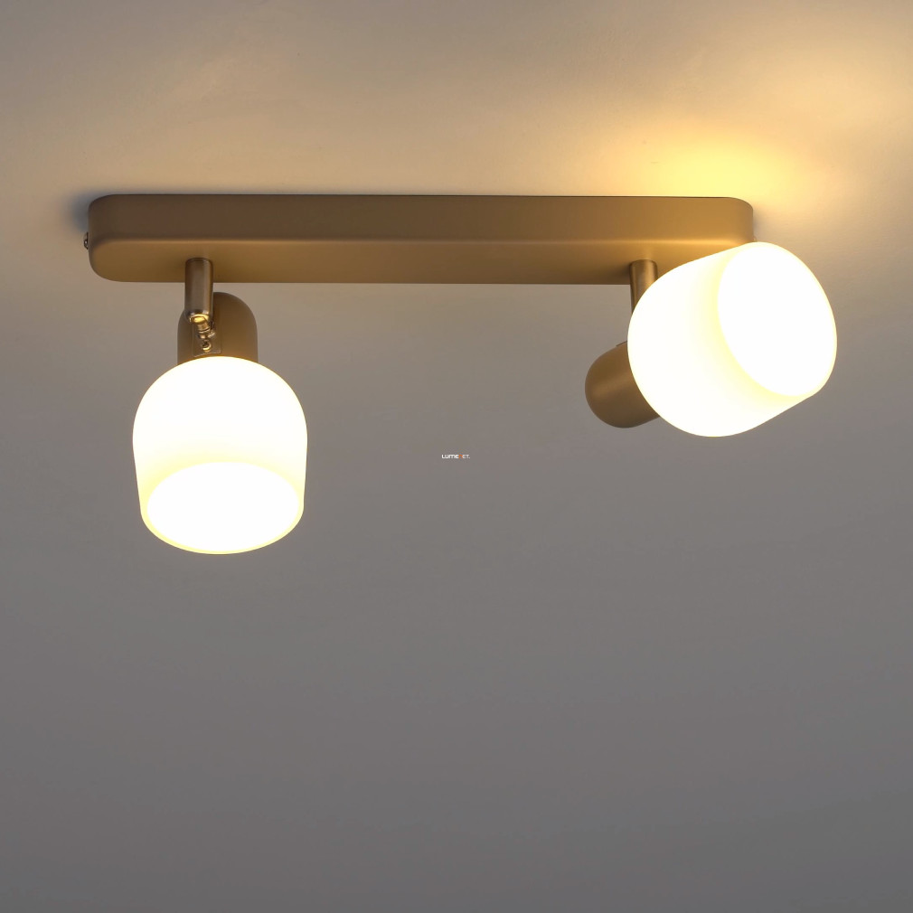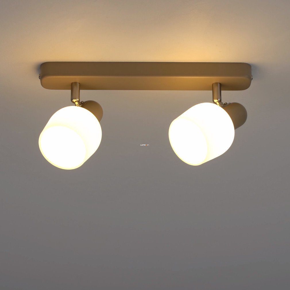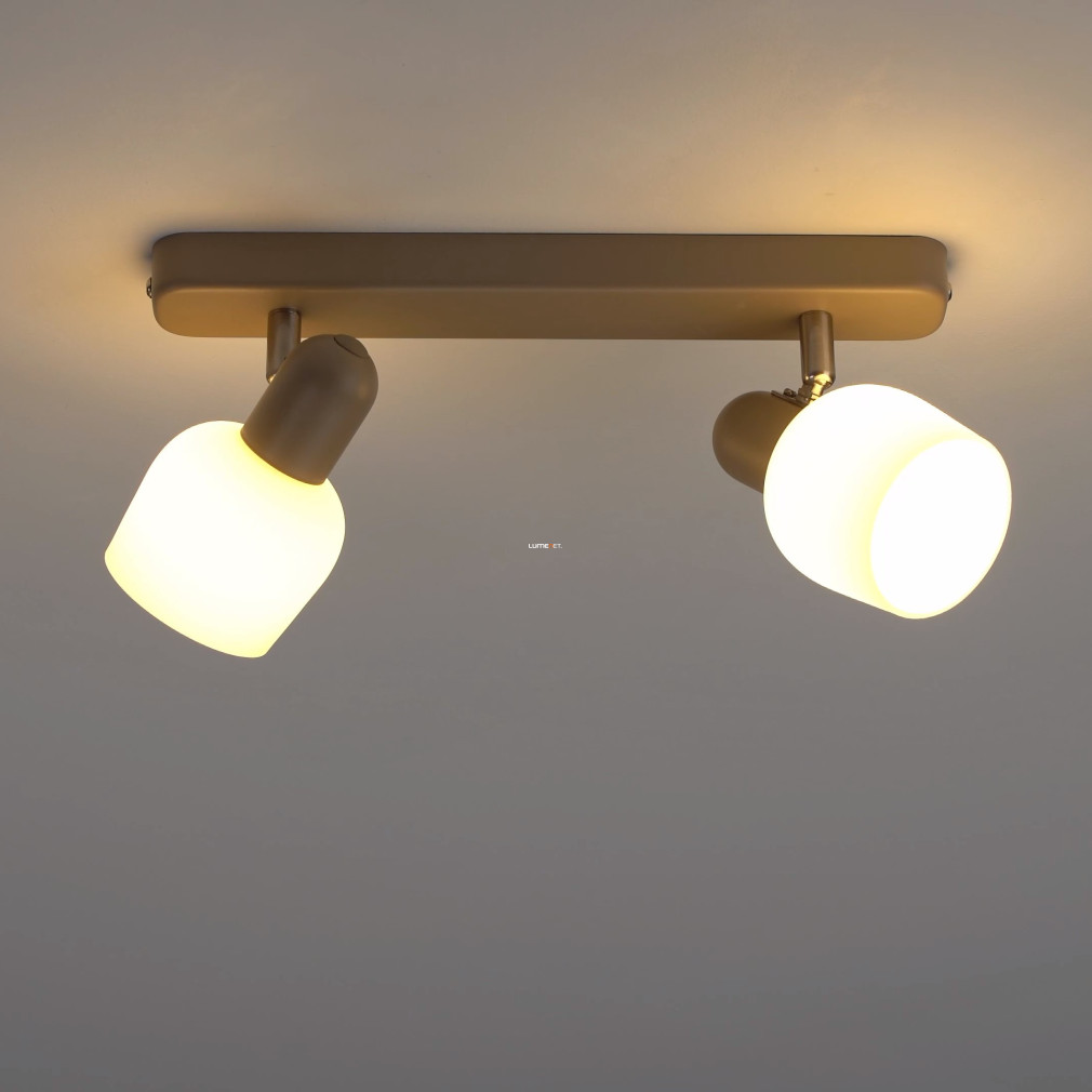 A Corato Eglo 900715 homokszínű spot lámpa két E14 foglalattal rendelkezik, amelyekbe cserélhető fényforrás helyezhető. A lámpatest acélból és üvegből készült, fehér színben, IP20 védettséggel. A termék teljes hossza 300 mm, magassága 125 mm, tömege 0,604 kg. A csomagolás méretei: 31 cm hosszú, 11 cm széles és 8 cm magas. A lámpa fényáram, fényszín, teljesítmény és színhőmérséklet tekintetében is a beépített fényforrástól függ, mivel a fényforrást nem tartalmazza. Gyártója az EGLO.