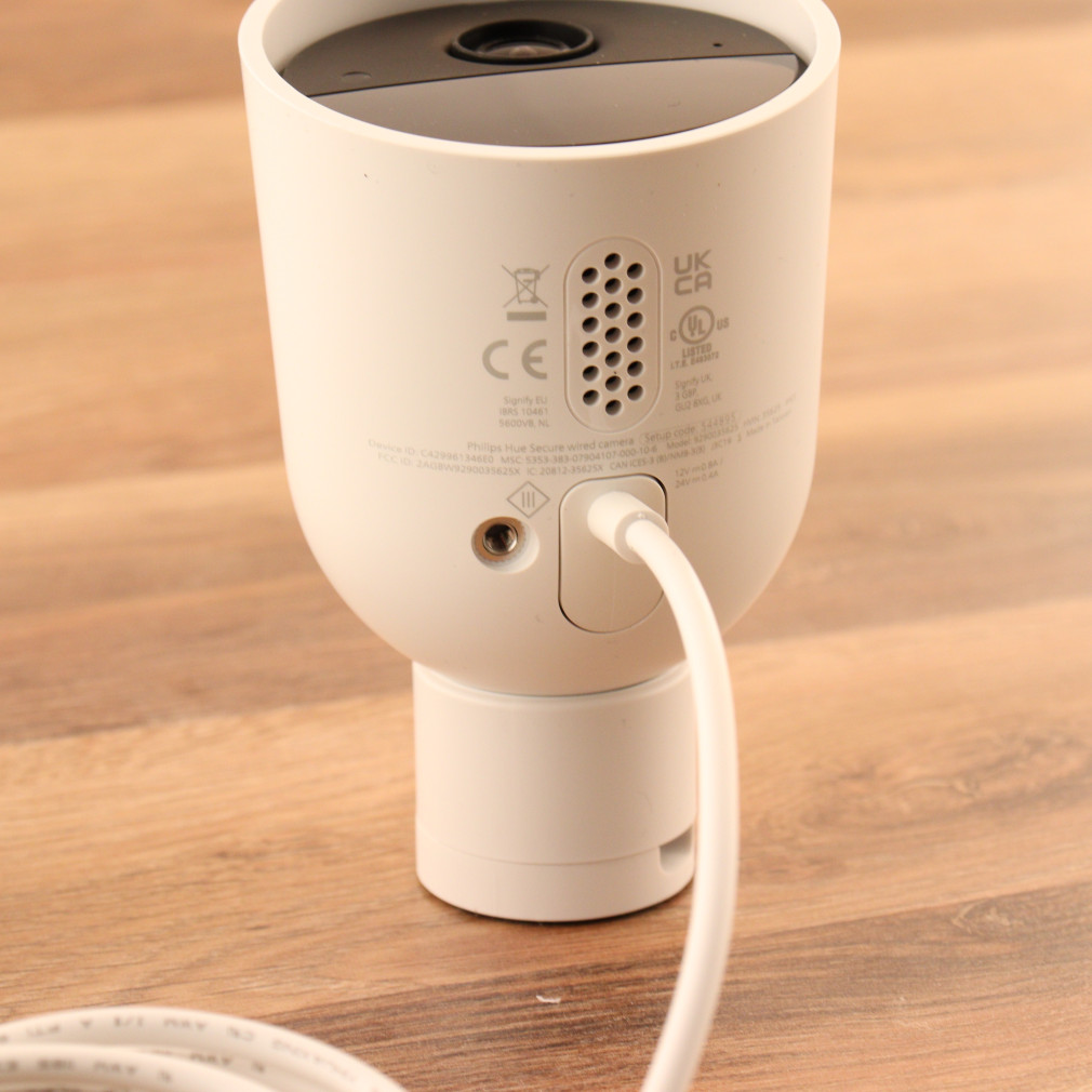 A Hue kamera mágnesesen csatlakozik a fali tartójához. Mindez lehetővé teszi számodra, hogy egyetlen mozdulattal beállíthasd, merre nézzen a kamera, így garantáltan nem maradsz le semmilyen történésről. Mivel IP65-védett, így egyaránt használható kül- és beltéren is. Ez a verzió hálózatról üzemeltethető.