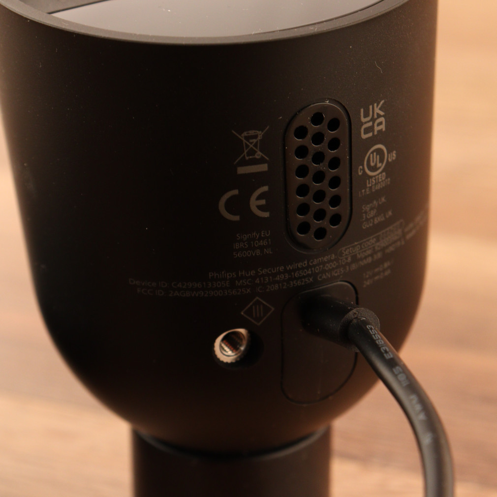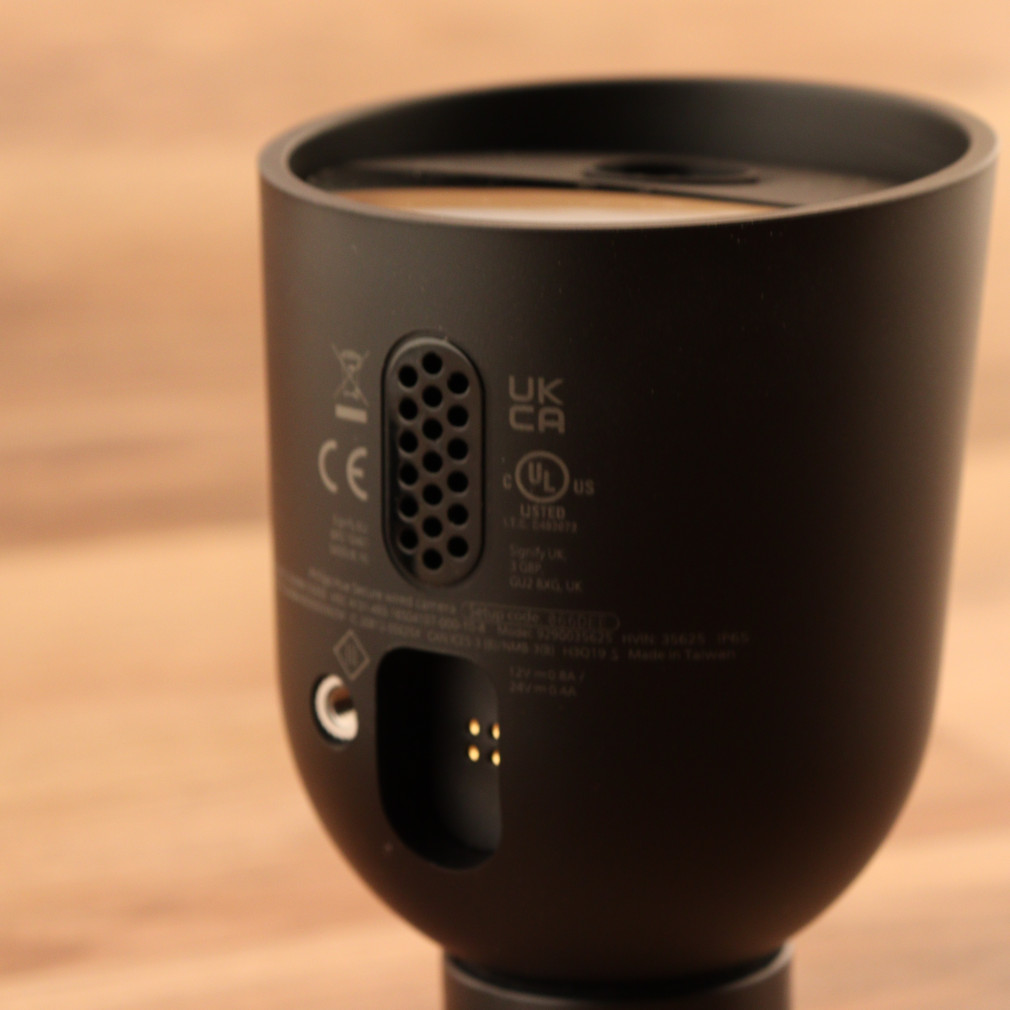 A Hue kamera mágnesesen csatlakozik a fali tartójához. Mindez lehetővé teszi számodra, hogy egyetlen mozdulattal beállíthasd, merre nézzen a kamera, így garantáltan nem maradsz le semmilyen történésről. Mivel IP65-védett, így egyaránt használható kül- és beltéren is. Ez a verzió hálózatról üzemeltethető.