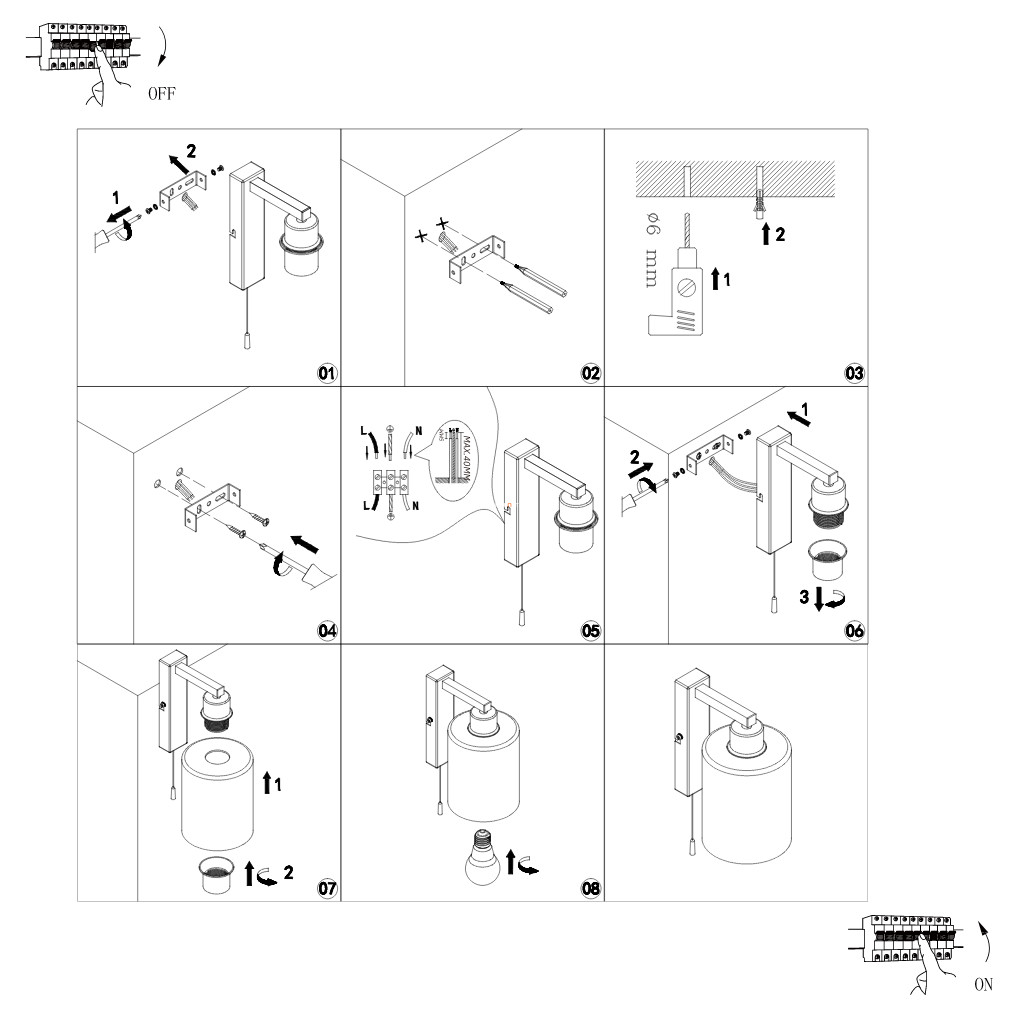 Húzókapcsolós fali lámpa, üveg - Miroslaw Rábalux 5077