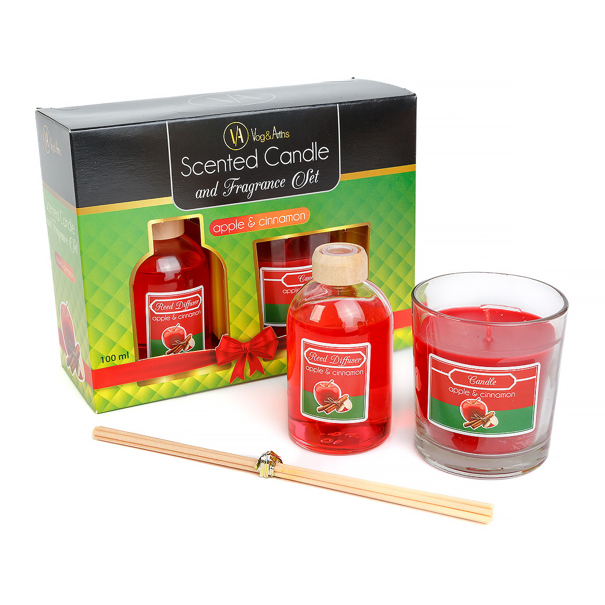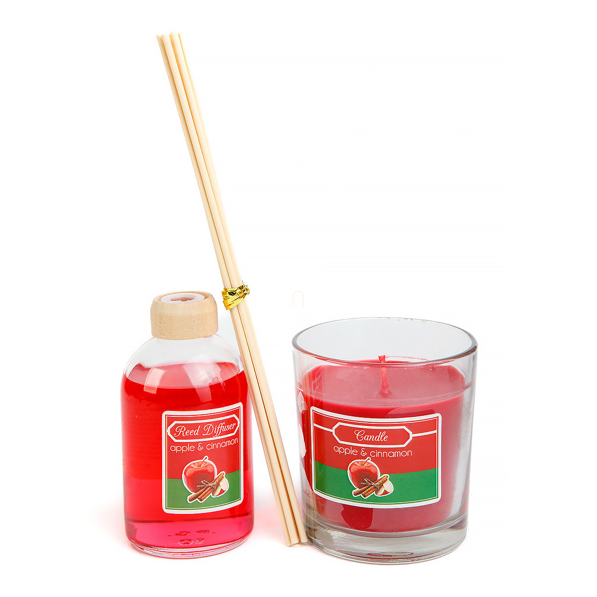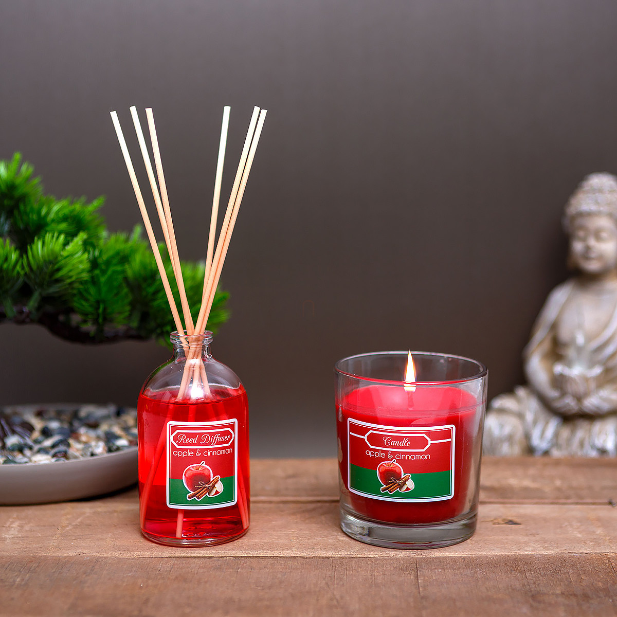Pálcikás illatosító és illatgyertya egy szettben. Élvezze az otthona, irodája kellemes hangulatát az alma és fahéj közös illatával. A finom, mégis markáns almás jegyek a fahéjjal keverednek, így egy igazi őszi kert illatát varázsolja otthonába. A gyertya gyönyörű fényével és kellemes illatával tökéletes kiegészítője lesz otthonának. A pálcikás illatosító tovább fokozza az illatélményt: Hosszú időn át árasztja magából az illatot, teret adva a varázsnak. Egyszerűen helyezze a pálcikákat az illatosítóba, és élvezze, ahogy az illat fokozatosan terjed a szobában. Ez a csomag ideális választás azoknak, akik szeretik a kellemes illatokat. Tökéletes ajándék lehet szeretteinek, hiszen a kellemes illatok mindenkit elvarázsolnak.