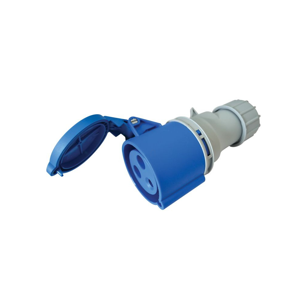 Ipari csatlakozóaljzat, külső tömszelencével, 32A, 230V, 2P+E, 6h, IP44 TICS-223H Tracon