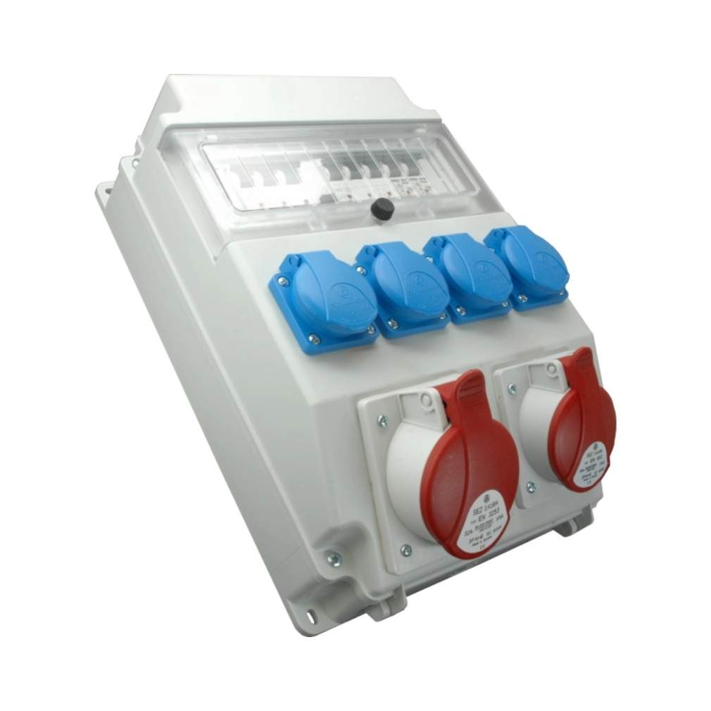Ipari kombináció 4 db háztartási dugalj + 1 db 16A 5P + 1 db 32A 5P védelemmel (kismegszakítókkal + Fi-relével szerelve) ROS 11/FI-21 /S (202035) SEZ