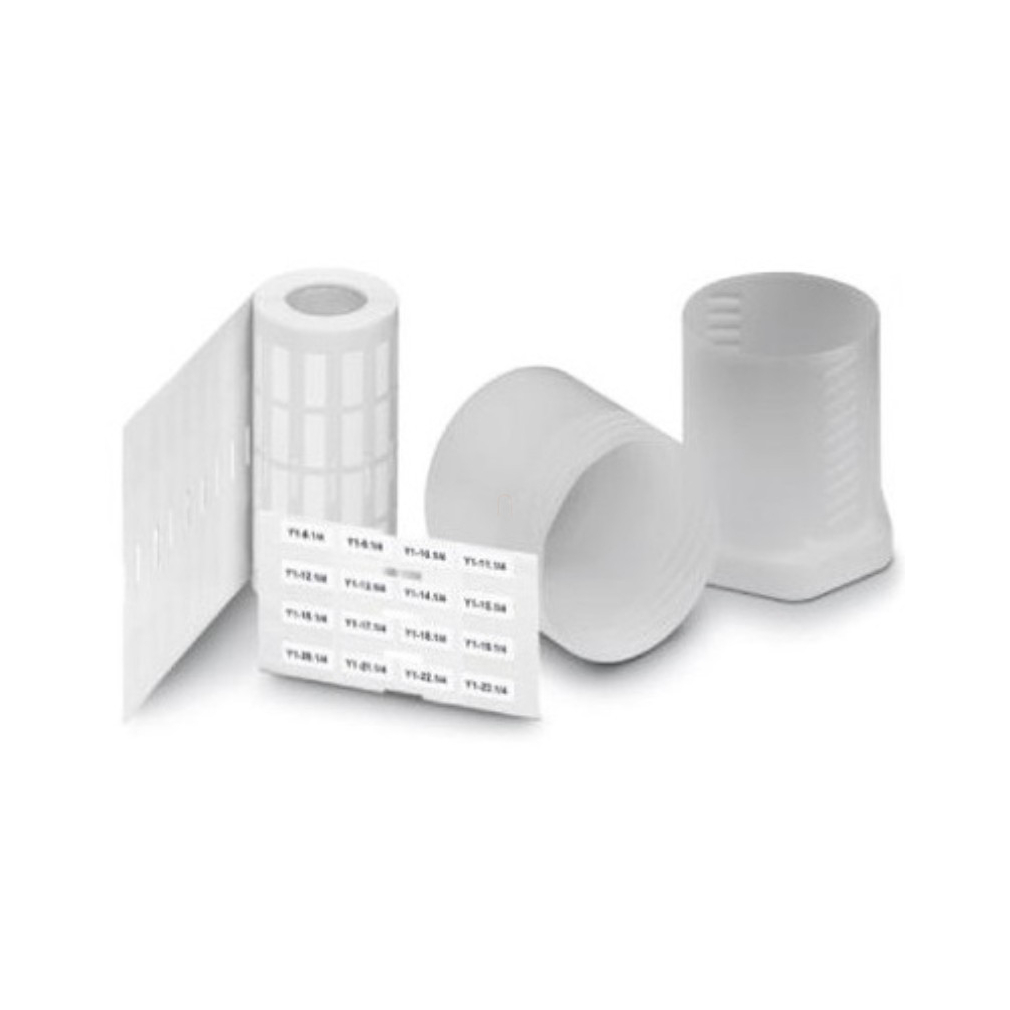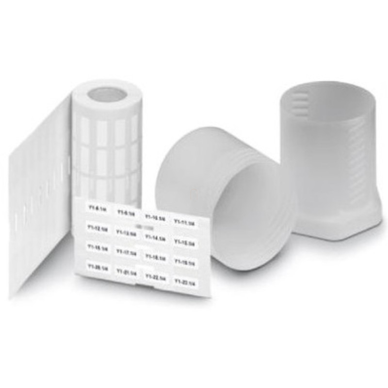 Jelölőcímke, Tekercs, fehér, felirat nélkül, feliratozható a következőkkel: THERMOMARK ROLLMASTER 300/600, THERMOMARK X1.2, THERMOMARK ROLL X1, THERMOMARK ROLL 2.0, THERMOMARK ROLL, szerelési mód: ragasztható, szövegmező mérete: 20 mm x 8 mm