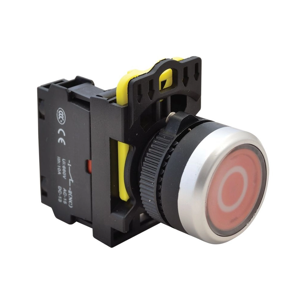 Jelölt nyomógomb, piros, (fehér 0) 1×NC, 5A/230V IP65 NYG3-P2 Tracon