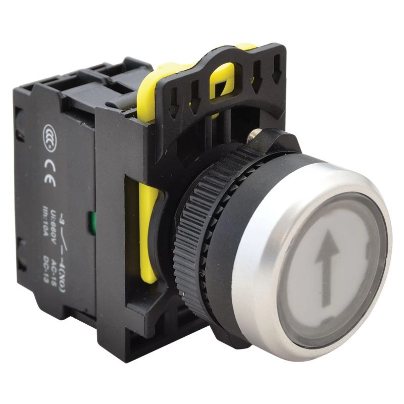 Jelölt, világító nyomógomb, fehér, (fekete nyíl) 1×NO, 5A IP65 NYG3-P3L Tracon