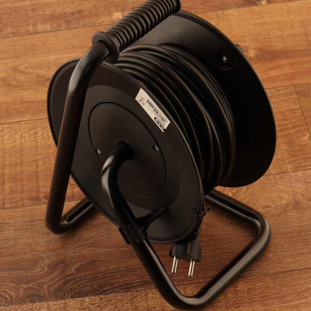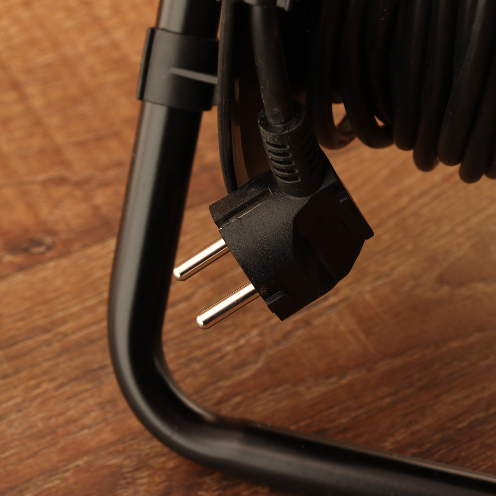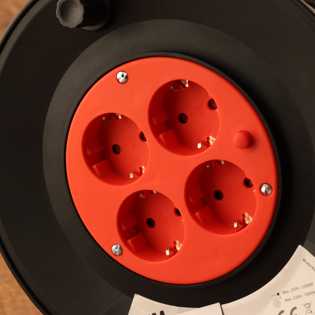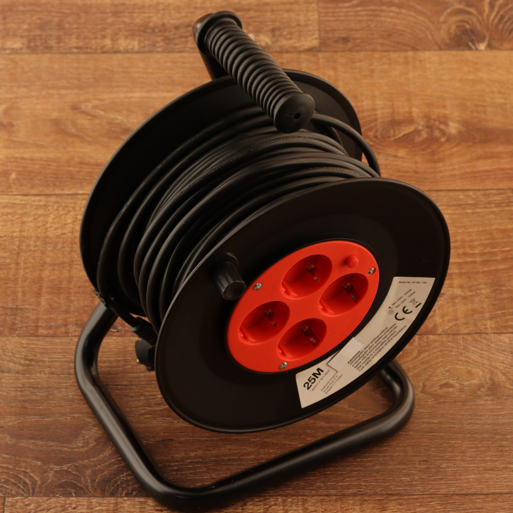 Kábeldob 4 dugaljjal, 25 méteres, fekete/piros