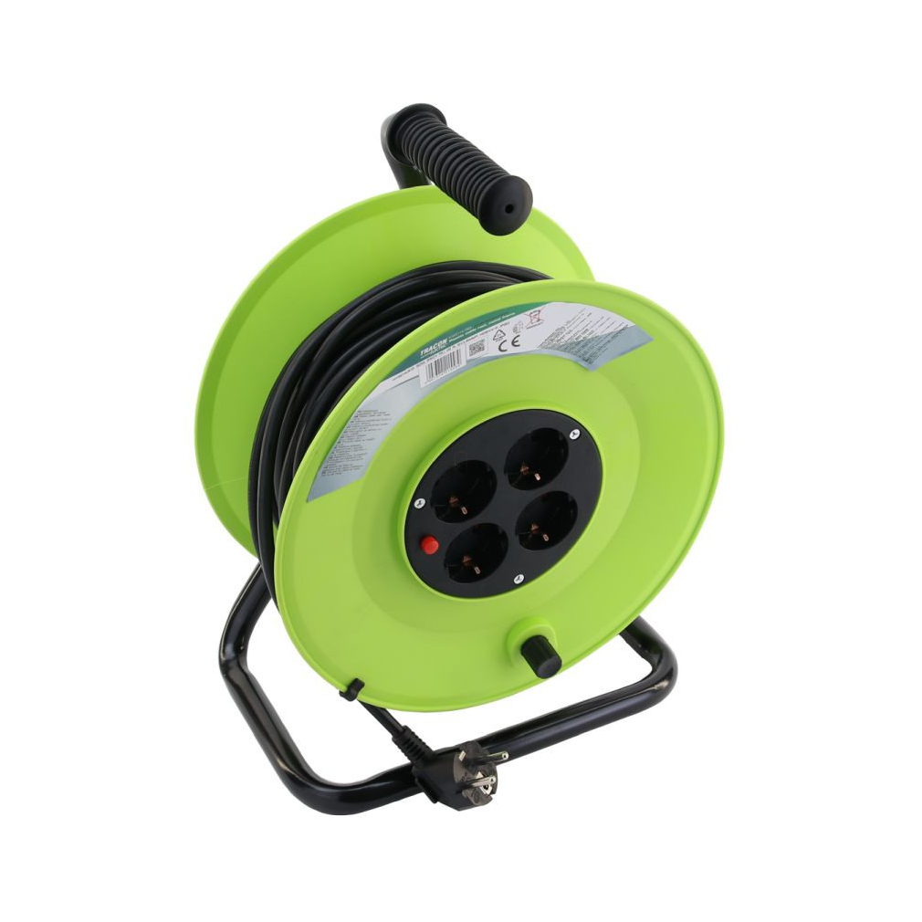 Kábeldobos hosszabbító, fémvázzal 4×SCHUKO, 20m, 250V 16A, 3×1,5mm2, H05VV-F,IP20 KDZ-4/20 Tracon