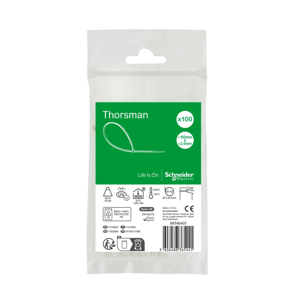 Schneider Electric Thorsman - IMT46401 - Kábelkötegelő, 100x2.5mm, színtelen (100 db)