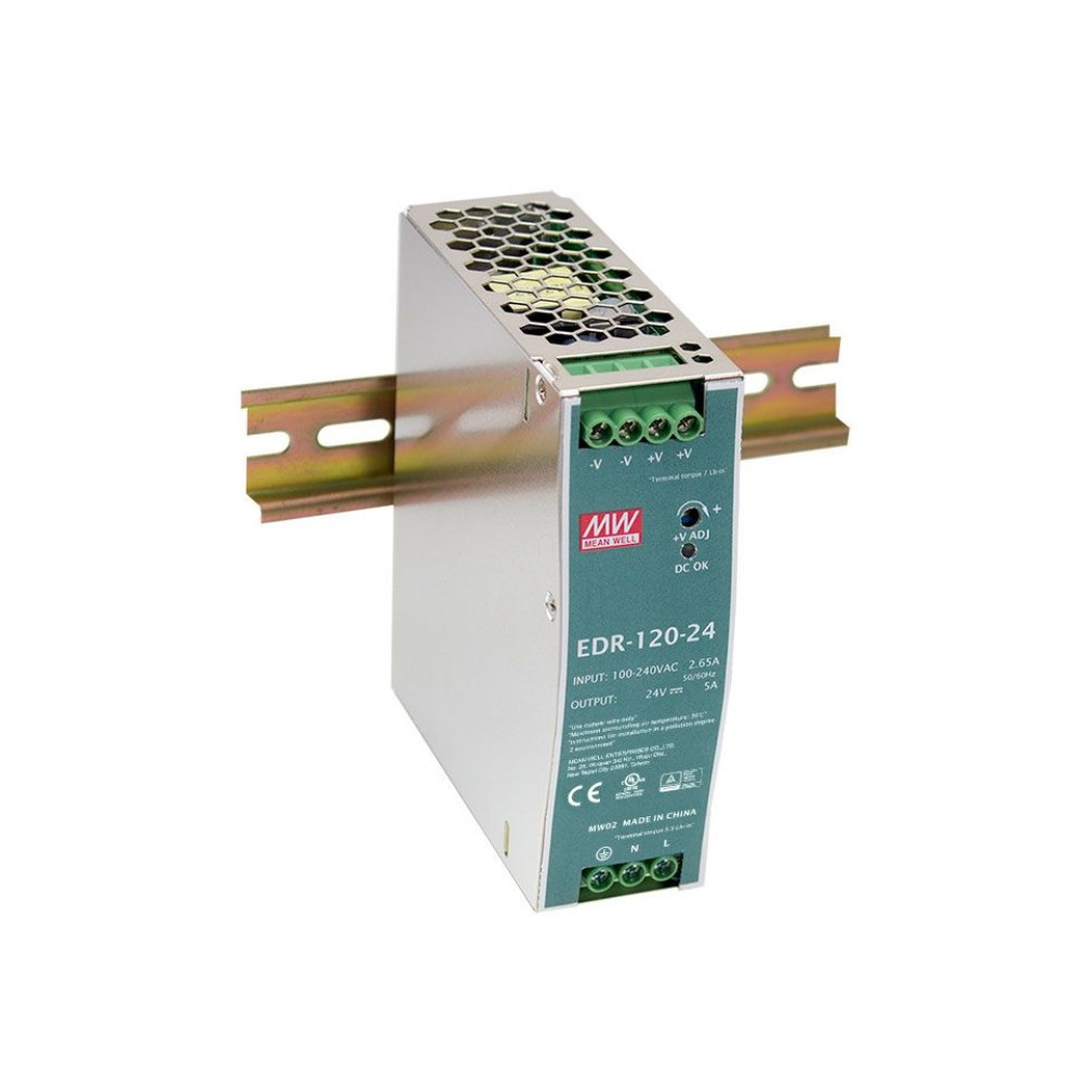 Kapcsolóüzemű tápegység, DIN sínre Vin: 90-264 VAC/120-370 VDC, Vout: 24 VDC (0-5A), P: 120 W Mean Well EDR-120-24