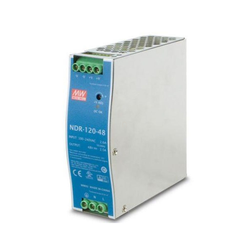 Kapcsolóüzemű tápegység, DIN sínre Vin: 90-264 VAC/120-370 VDC, Vout: 48 VDC (0-2,5A), P: 120 W Mean Well NDR-120-48