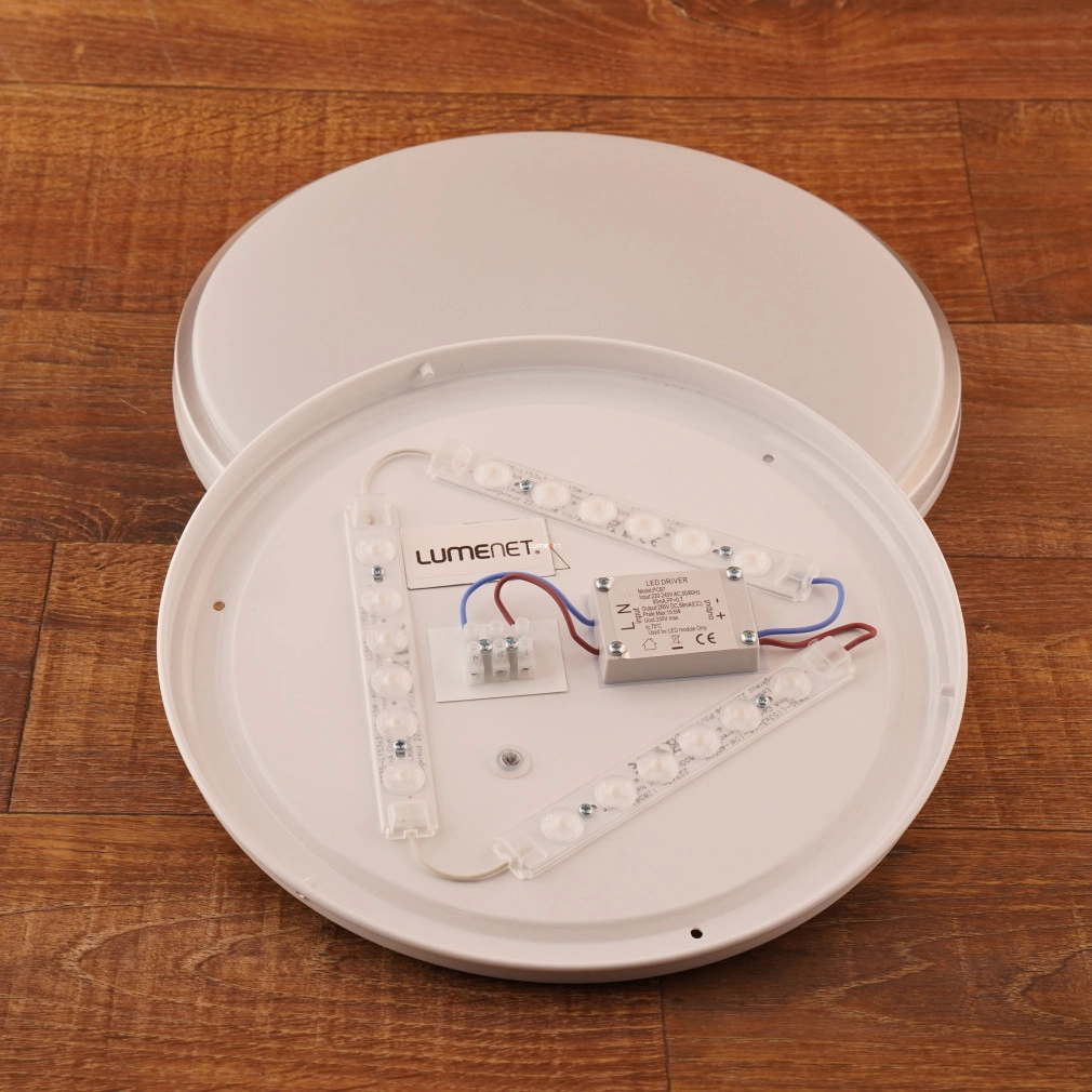 A Marunella Eglo 75437 mennyezeti LED lámpa modern technológiájával és letisztult kialakításával ideális megoldást kínál otthoni világítási igényekhez. A lámpa 18 W teljesítményű integrált LED modullal működik, amely 2000 lumen fényáramot biztosít hidegfehér, 4000 K színhőmérsékletű fénnyel. A termék falikapcsolóval szabályozható, így a világítás intenzitása könnyedén igazítható a kívánt hangulathoz. A lámpatest acél és műanyag kombinációjából készült, fehér-nikkel színű kivitelben. Átmérője 340 mm, magassága 65 mm, védettségi besorolása IP20, amely beltéri használatra teszi alkalmassá. A csomag tartalmazza a beépített LED fényforrást, amely hosszú élettartamot és energiatakarékos működést biztosít.