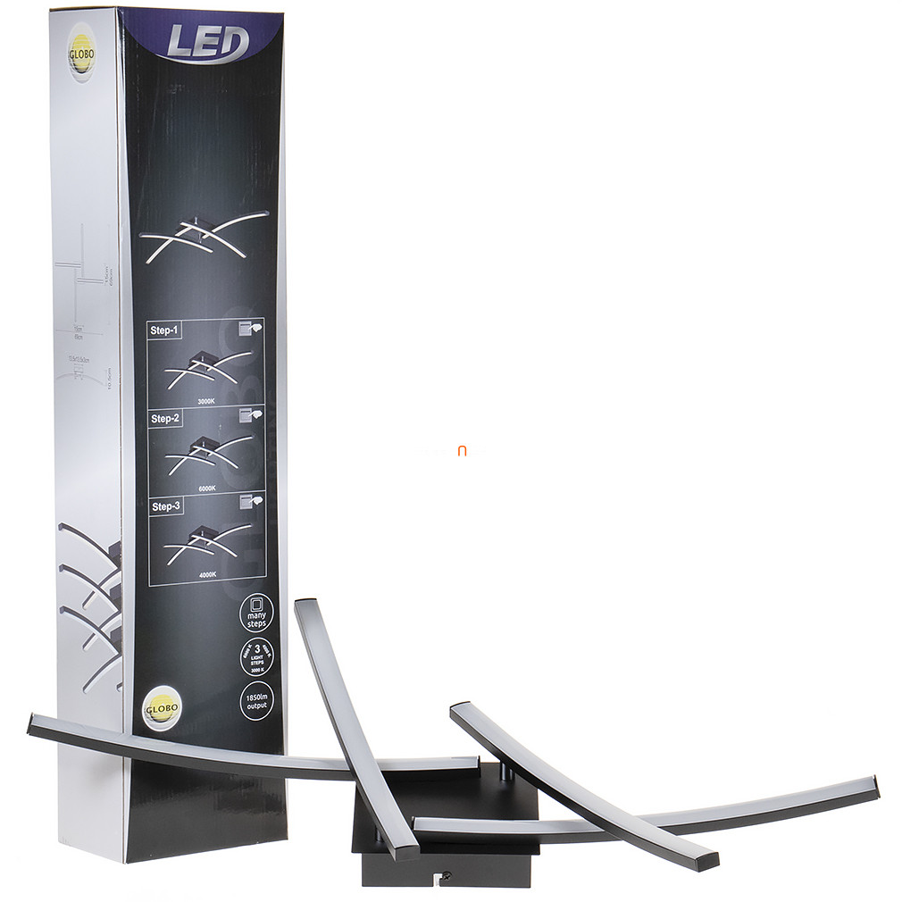 A Tansy Globo 67129-24 mennyezeti LED lámpa korszerű világítási megoldást kínál, amely 24 W teljesítményű LED modullal működik, 1850 lumen fényáramot biztosítva. A lámpatest színhőmérséklete kapcsolóval szabályozható, lehetővé téve a 3000, 4000 és 6000 Kelvin közötti, változtatható fehér fény beállítását. A lámpa forgatható karokkal rendelkezik, így a fény iránya igény szerint állítható. A termék fém és műanyag anyagból készült, fekete és opál színkombinációban. A mennyezeti lámpa LED modulja beépített, így nincs szükség külön fényforrásra. A lámpatest IP20 védettségi szinttel rendelkezik, amely beltéri használatra alkalmas. Méretei 690 mm hosszúság, 690 mm szélesség és 105 mm magasság, a csomagolás mérete pedig 16 x 12 x 70 cm. A termék tömege 0,97 kg, gyártója a Globo.