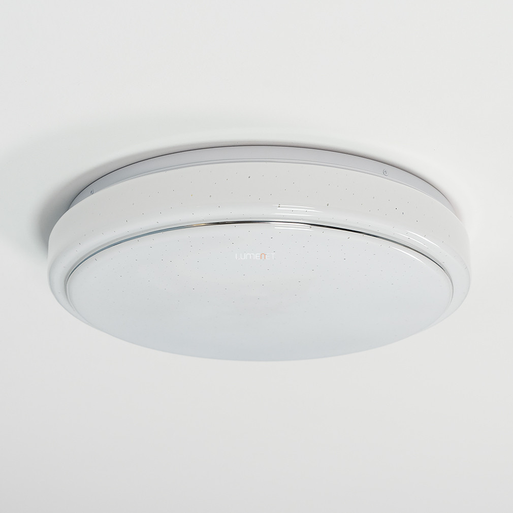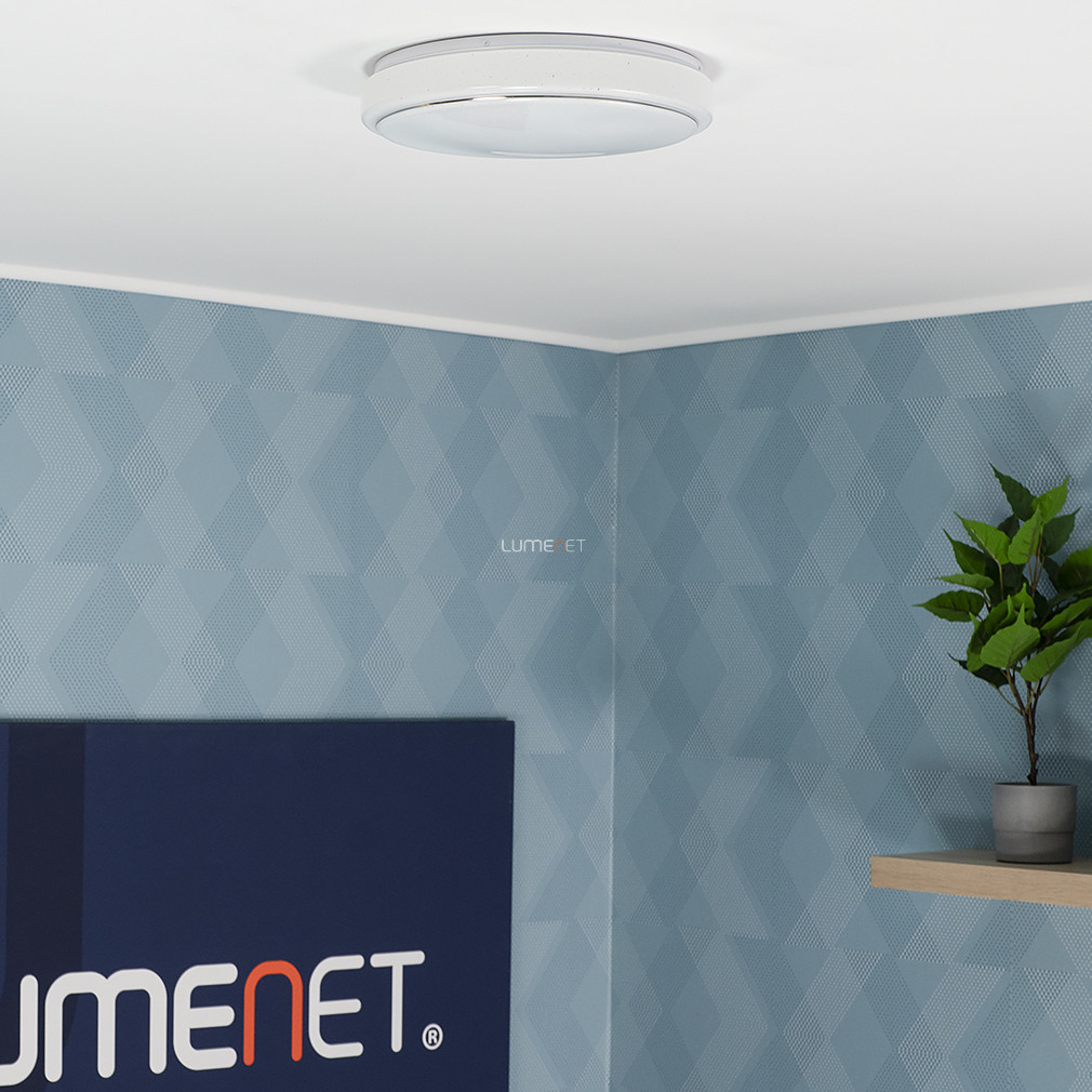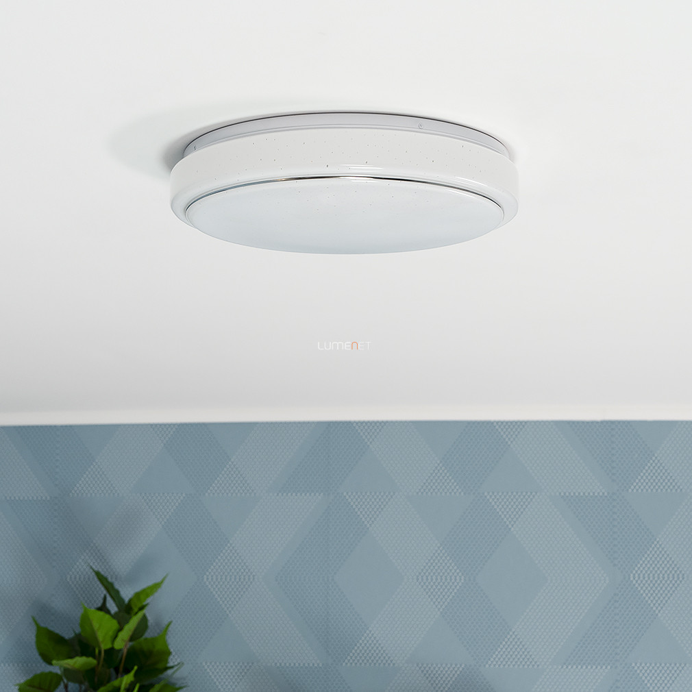A Kalle Globo 48408-24 mennyezeti LED lámpa modern stílusú kialakítással és króm dekor csíkkal rendelkezik, amely elegáns megjelenést kölcsönöz bármely helyiségnek. A lámpatest 24 W teljesítményű LED modullal szerelt, amely 1900 lumen fényáramot biztosít. A fény színhőmérséklete három fokozatban változtatható (3000 K, 4000 K, 6000 K), így a világítás a kívánt hangulathoz igazítható. A lámpa falikapcsolóval szabályozható, és memória funkcióval is rendelkezik, amely megjegyzi az utoljára beállított fényerőt és színhőmérsékletet. A termék IP20-as védettségű, így beltéri használatra alkalmas. A lámpatest átmérője 375 mm, magassága 75 mm, anyaga fém és műanyag, színe fehér és ezüst. A LED fényforrás a lámpatestbe van integrálva, így nincs szükség külön izzó beszerzésére.