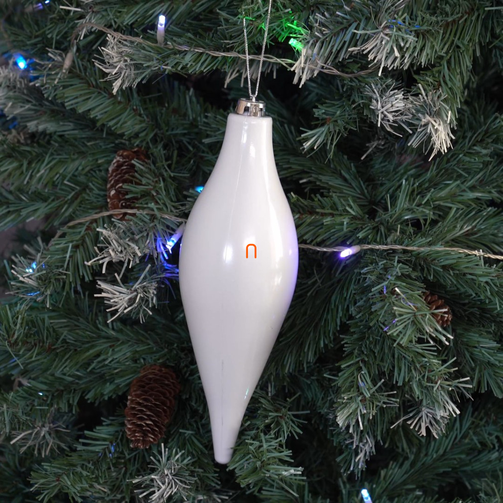 Karácsonyfadísz fehér színben, cseppalakú - 30cm