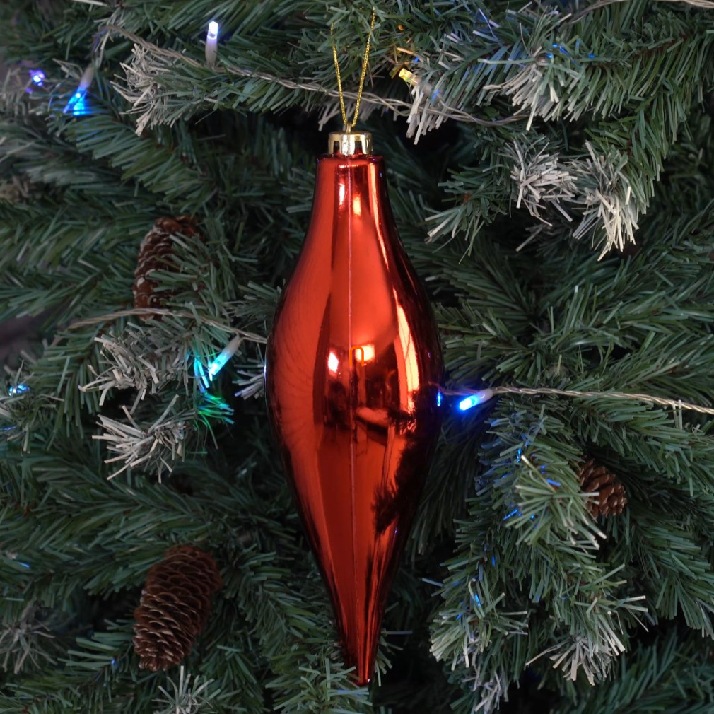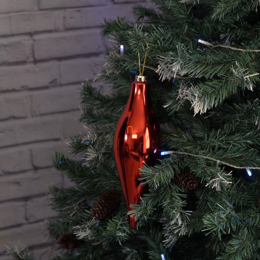 Karácsonyfadísz piros színben, cseppalakú - 30cm