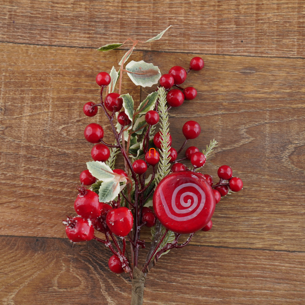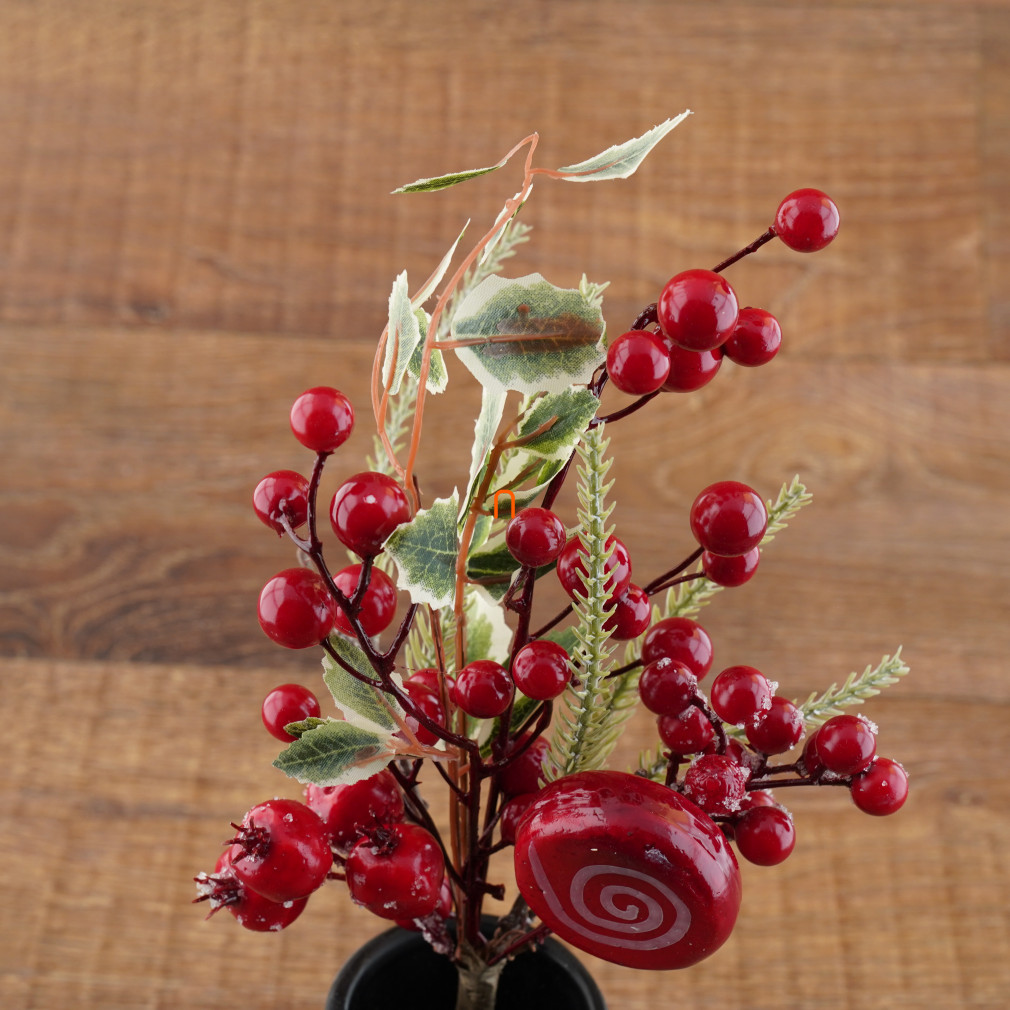 Karácsonyi bogyós műnövény dekoráció, 38cm