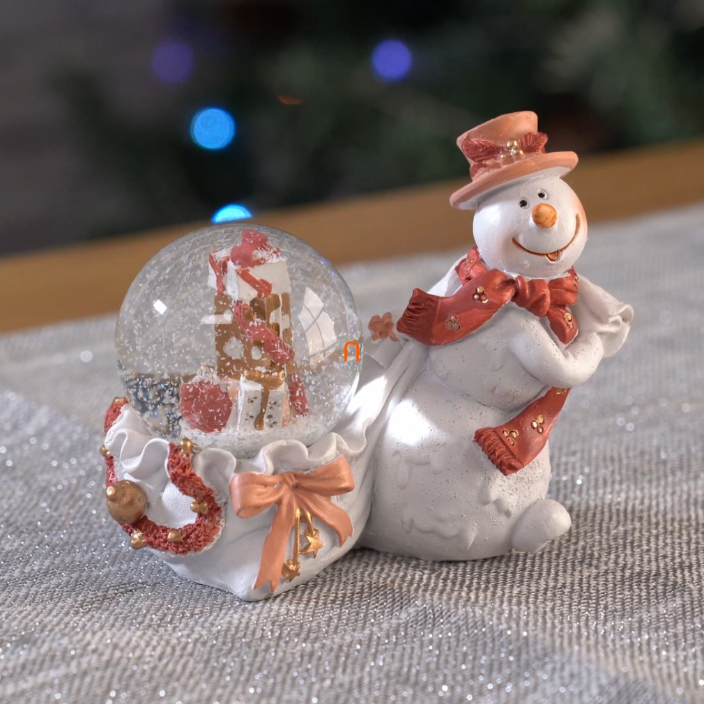 Karácsonyi hógömb - hóember ajándékkal 8cm