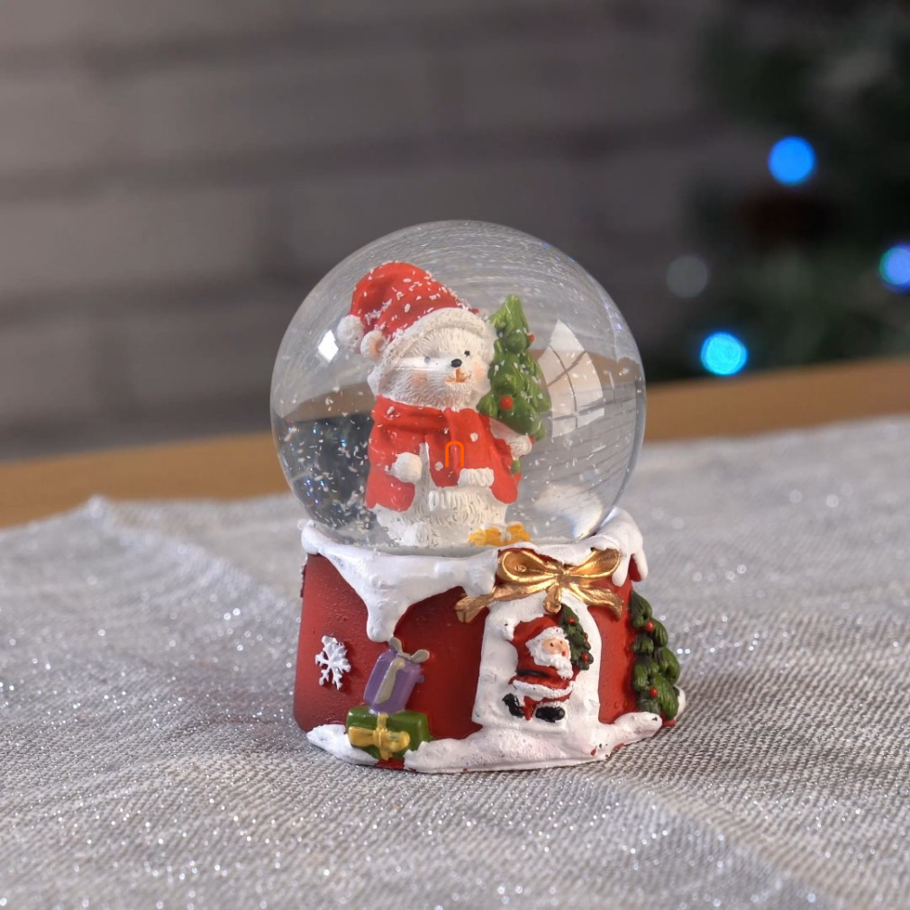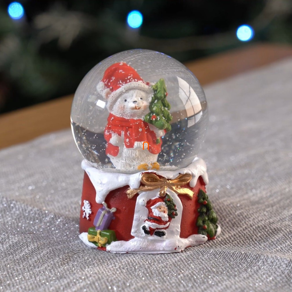 Karácsonyi hógömb - jegesmedve fenyőfával, 10cm