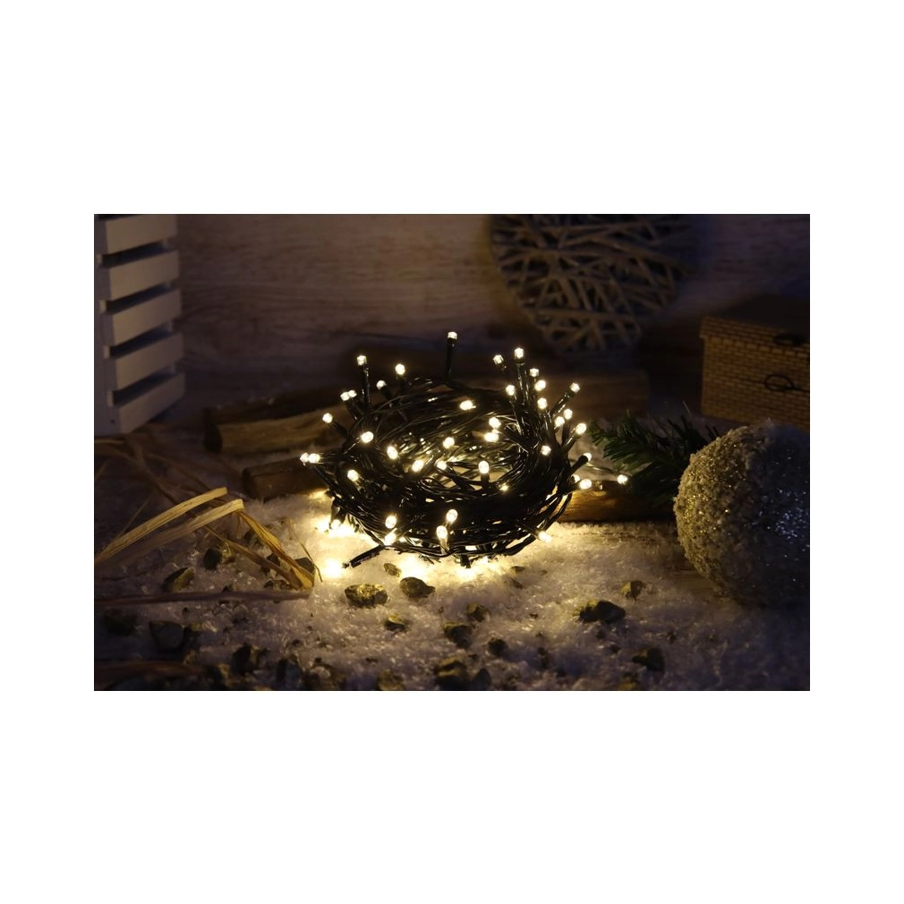Karácsonyi programozható fényfüzér, 2+10M, 100LED, 3,6W, 2700K IP44 CHRSTOP100WW Tracon