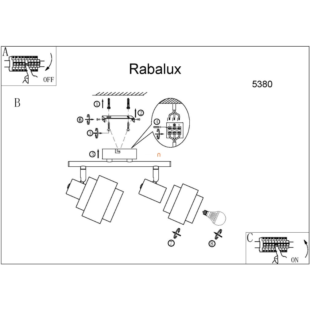 A Basil Rábalux 5380 karos mennyezeti spot lámpa két E14 foglalattal rendelkezik, modern stílusban készült, króm és fa színű kivitelben. A lámpatest fém és műanyag anyagokból áll, így tartós és stabil szerkezetet biztosít. A termék 325 mm hosszúságú és 150 mm magasságú, tömege 0,74 kg. A világítótest IP20 védettségi besorolással rendelkezik, kizárólag beltéri használatra alkalmas. A fényforrás nem tartozék, a lámpa cserélhető fényforrásokkal működtethető, melyek színhőmérséklete, fényárama és teljesítménye a felhasználó igényei szerint választható. A lámpatest nem szabályozható, két foglalatának köszönhetően egyszerre több fényforrás is elhelyezhető benne. A termék logisztikai kódja 5380, gyártója a Rábalux.