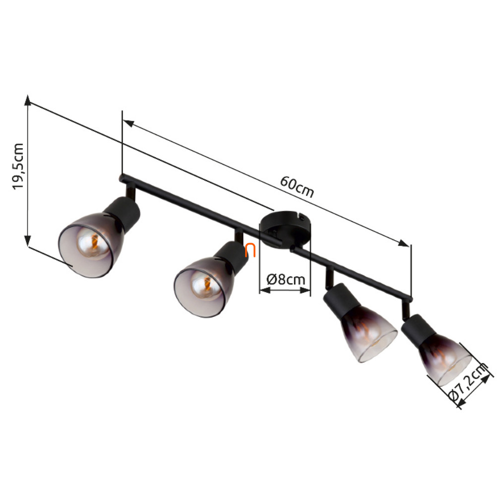 A Satella Globo 54312-4 karos spot lámpa négy darab E14 foglalattal rendelkezik, amelyek cserélhető fényforrás befogadására alkalmasak. A lámpatest 230 V névleges feszültséggel üzemel, és IP20 védettségi besorolással rendelkezik, így beltéri használatra ajánlott. A lámpa fém és üveg anyagokból készült, matt fekete és füstszínű kivitelben. Méretei 600 mm hosszúság, 80 mm szélesség és 195 mm magasság. A termék nem tartalmaz fényforrást, így a kívánt fényáram, színhőmérséklet és teljesítmény a kiválasztott izzótól függ. A logisztikai kódja 54312-4, tömege 1,08 kg. A gyártó a Globo.