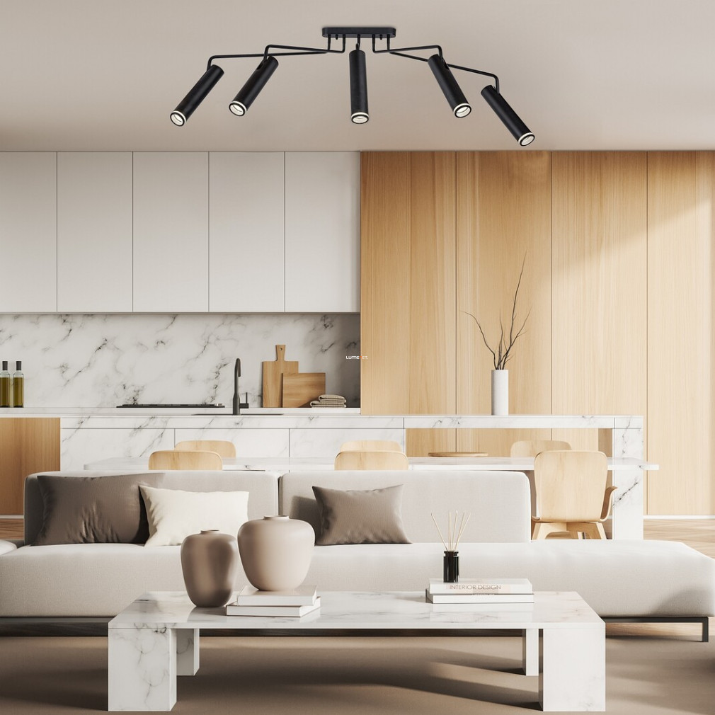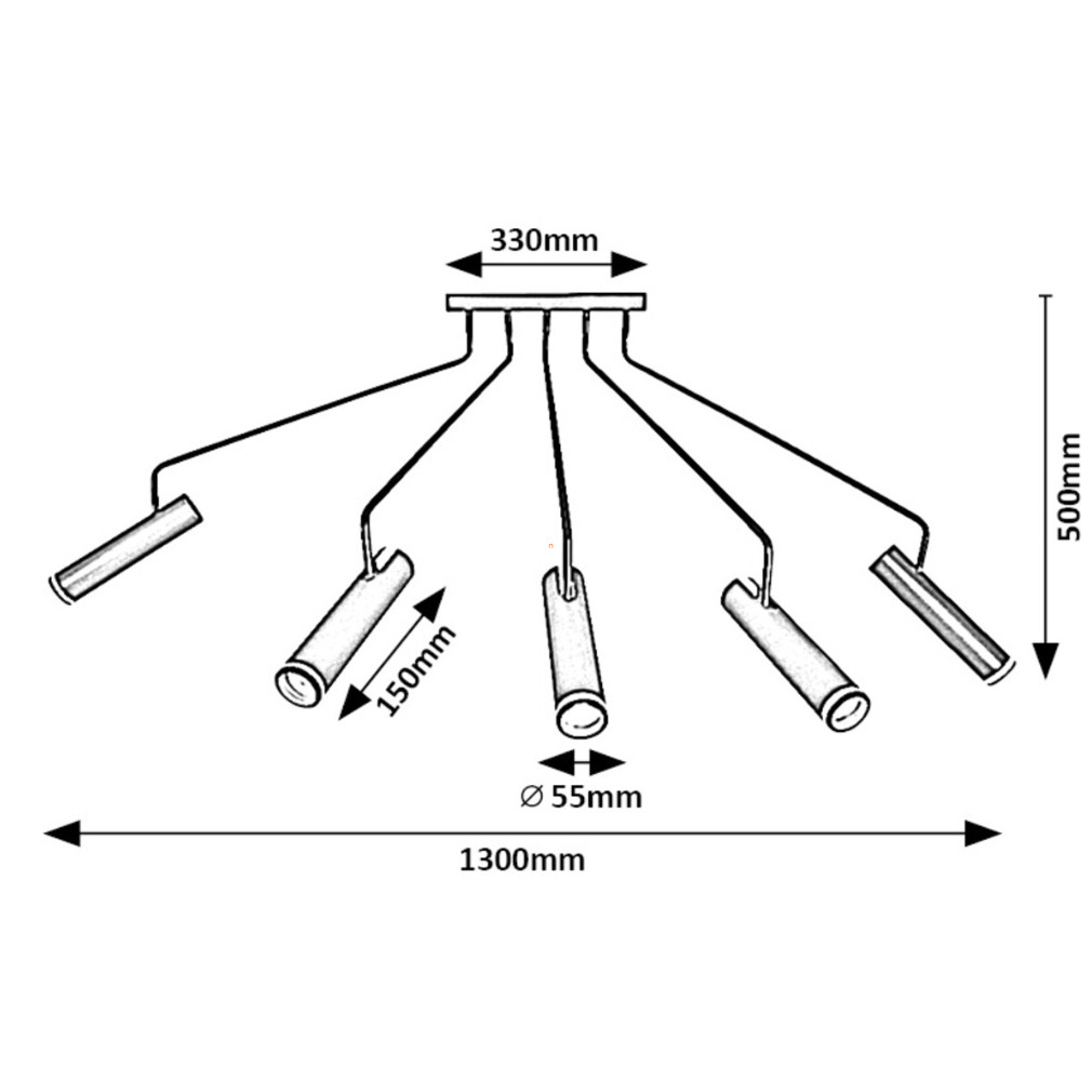 A Senobia Rábalux 73040 karos spot lámpa öt darab GU10 foglalattal rendelkezik, így egyszerre több fényforrás elhelyezését teszi lehetővé. A lámpatest 230 V névleges feszültségen működik, és nem tartalmazza a fényforrásokat, így a fényáram, fényszín, teljesítmény és színhőmérséklet a kiválasztott izzók típusától függően szabadon variálható. A mennyezeti lámpa fekete-fehér színkombinációban, alumínium és műanyag felhasználásával készül, amely biztosítja a tartósságot és a modern megjelenést. A lámpa IP20 védettségi szinttel rendelkezik, amely beltéri használatra teszi alkalmassá. Méretei 1300 mm hosszúság, 55 mm szélesség és 500 mm magasság, így nagyobb helyiségek megvilágítására is alkalmas. A termék tömege 2,85 kg, a csomagolás méretei pedig 62x62x25 cm. A Senobia Rábalux 73040 ideális választás azok számára, akik egy letisztult, modern mennyezeti világítási megoldást keresnek több irányba állítható spotokkal.