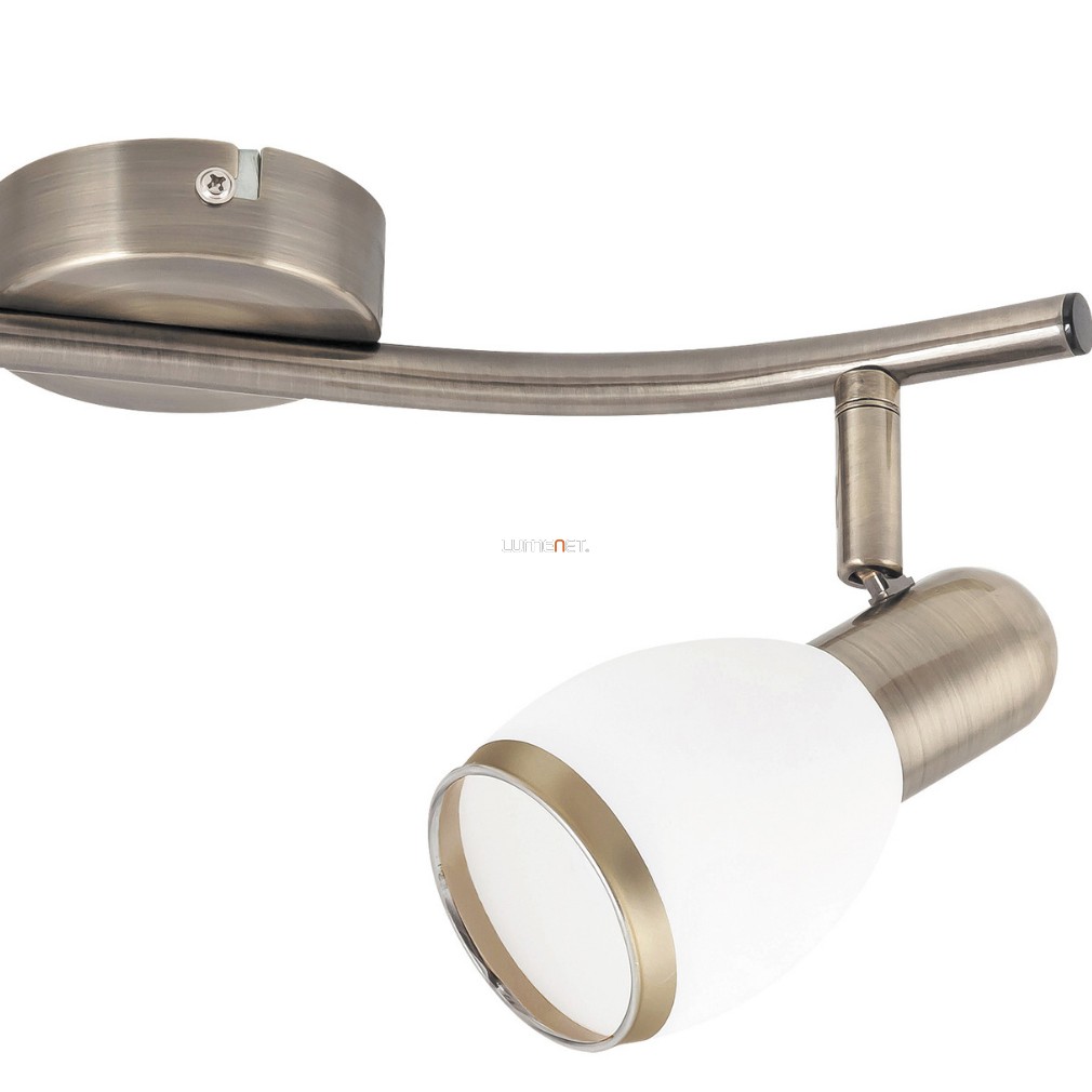 A Karos spot lámpa két foglalattal, bronz kivitelben, az Elite Rábalux 5971 modellje, klasszikus stílusú fali lámpatest, amely két darab E14 foglalattal rendelkezik. A lámpatest anyaga fém és üveg, bronz és fehér színkombinációban. A termék cserélhető fényforrás befogadására alkalmas, a fényforrást nem tartalmazza, így a fényáram, fényszín, teljesítmény és színhőmérséklet a választott izzótól függ. A lámpa nem szabályozható, IP20 védettséggel rendelkezik, beltéri használatra tervezve. A lámpatest hossza 80 mm, szélessége 340 mm, tömege 0,55 kg. Csomagolási méretei: szélesség 12 cm, hosszúság 9 cm, magasság 35 cm. Gyártója a Rábalux, logisztikai kódja 5971.