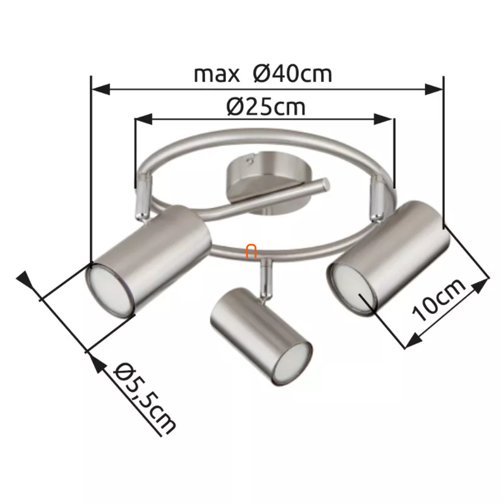 A Karos spot lámpa nikkel színben, Allvi Globo 57914-3N típusú modell, három darab GU10 foglalattal rendelkezik, amelyek cserélhető fényforrásokkal szerelhetők fel. A lámpatest 230 V névleges feszültséggel működik, anyaga tartós fém, felülete elegáns nikkel színű bevonattal készült. A termék IP20 védettségi szinttel rendelkezik, így beltéri használatra alkalmas. Átmérője 250 mm, magassága 135 mm, tömege 0,86 kg. A csomagolás méretei: 15 cm szélesség, 25 cm hosszúság és 26 cm magasság. A lámpatest nem tartalmaz fényforrást, a három GU10 foglalatba tetszőleges, kompatibilis izzók helyezhetők. A termék gyártója a Globo, logisztikai kódja 57914-3N.