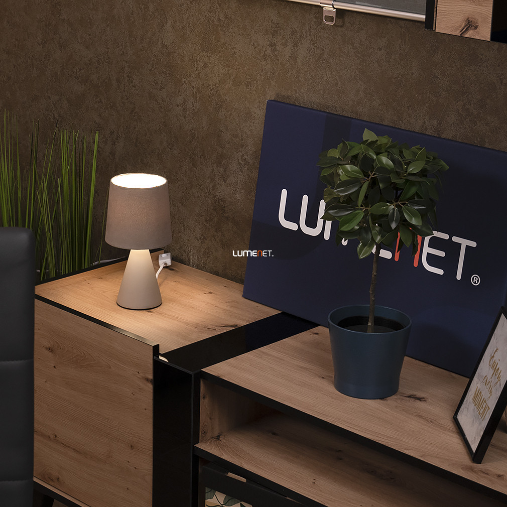 A Nalani Rábalux 2694 kerámia asztali lámpa 25 cm magasságával és 13 cm átmérőjével kompakt méretű, így ideális kisebb helyiségek vagy asztalok megvilágítására. A lámpatest bézs színű, kerámia talppal és textil lámpaernyővel rendelkezik, amely elegáns megjelenést biztosít bármely enteriőrben. Az E14 foglalat 1 darab cserélhető fényforrás befogadására alkalmas, amely nem tartozék, így a fényáram, színhőmérséklet és teljesítmény a választott izzótól függ. A lámpa zsinórkapcsolóval működtethető, nem szabályozható, és IP20 védettséggel rendelkezik, ami beltéri használatra teszi alkalmassá. A termék tömege 0,34 kg, csomagolási méretei 18x13x13 cm. A gyártó a Rábalux.