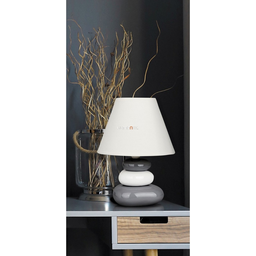 A Salem Rábalux 4948 kerámia éjjeli lámpa modern stílusú, kő torony formájú lámpatesttel rendelkezik, amelynek magassága 25 cm, átmérője pedig 18 cm. A lámpa fehér és szürke színkombinációban készült, anyaga kerámia és textil. Egy darab E14 foglalat található benne, amely cserélhető fényforrás használatát teszi lehetővé, a fényforrást a csomag nem tartalmazza. A lámpa zsinórkapcsolóval működtethető, nem szabályozható, védettsége IP20. A termék tömege 0,5 kg, csomagolási méretei mindhárom irányban 18 cm. A gyártó a Rábalux.