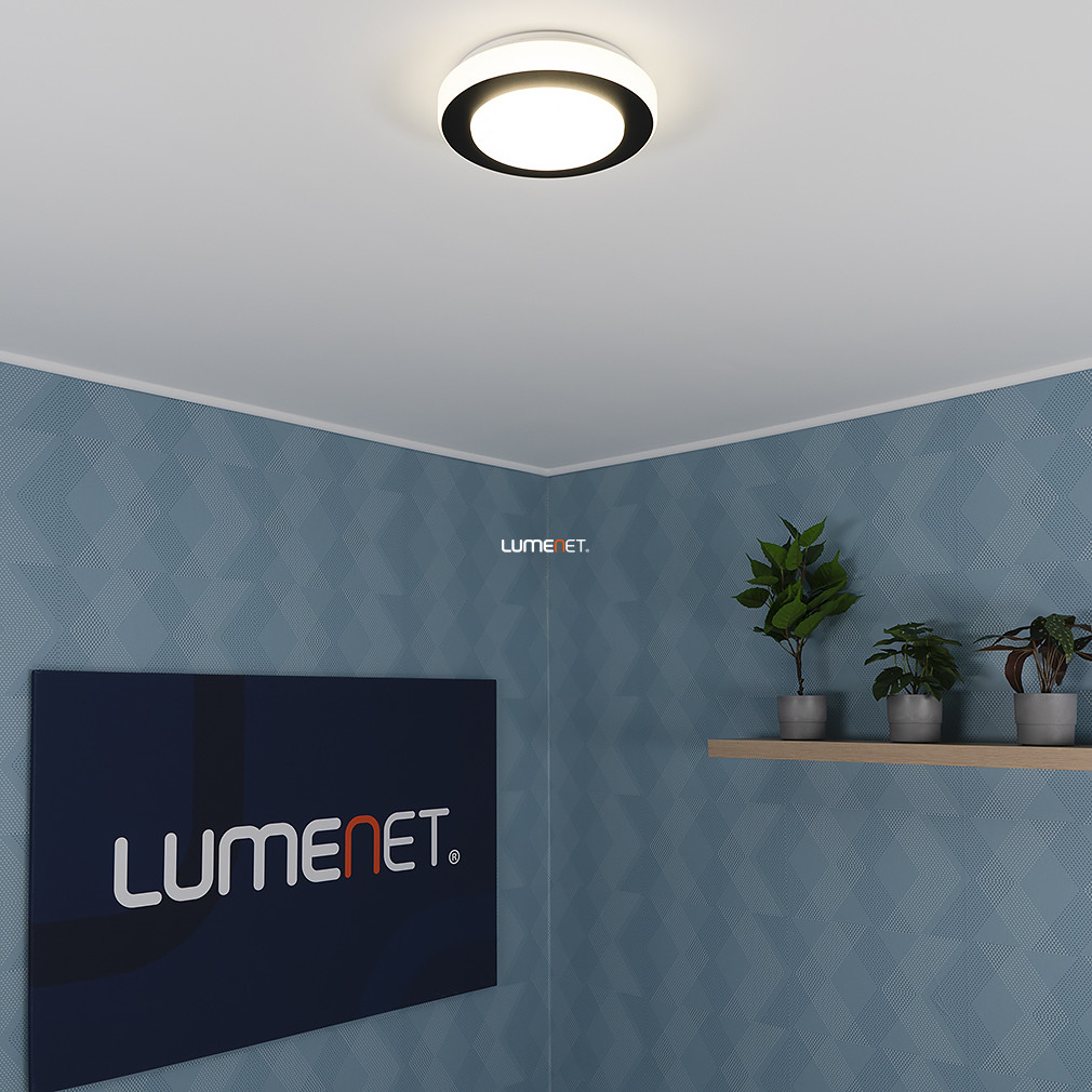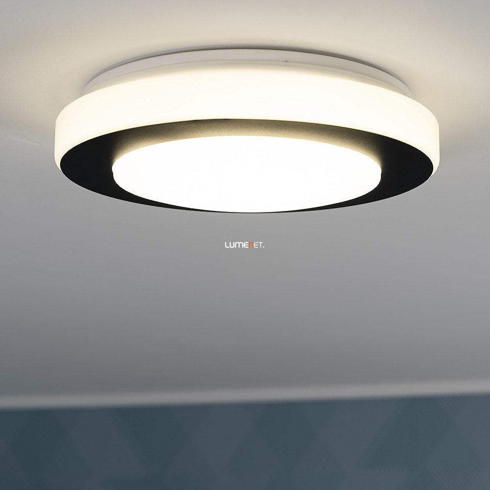 A Carpi kerek mennyezeti LED lámpa 30 cm-es átmérőjével és modern kialakításával ideális választás otthonod különböző helyiségeibe. A lámpa 11 W-os beépített LED modullal rendelkezik, amely 960 lumen fényáramot biztosít, így kellemes és egyenletes megvilágítást nyújt. A 3000 K színhőmérsékletű melegfehér fény barátságos és otthonos légkört teremt a szobában.Az IP44-es védettségnek köszönhetően a lámpa ellenáll a fröccsenő víznek, így fürdőszobai használatra is alkalmas. Az acél és műanyag anyagok kombinációja fekete és fehér színben elegáns megjelenést kölcsönöz a lámpának, amely könnyen illeszkedik a különböző belsőépítészeti stílusokhoz.A lámpa nem szabályozható, tehát mindig a maximális fényerőt biztosítja, ami előnyös lehet a mindennapi tevékenységek során. A beépített LED technológia hosszú élettartamot és energiatakarékos működést garantál, csökkentve a karbantartási igényeket és az energiafogyasztást.A 300 mm-es átmérő és a kompakt kialakítás lehetővé teszi a lámpa egyszerű felszerelését a mellékelt rögzítőelemek segítségével, így gyorsan és könnyedén telepíthető.A Carpi kerek mennyezeti LED lámpa kiváló választás, ha energiatakarékos, hosszú élettartamú és esztétikus világítási megoldást keresel otthonodba.