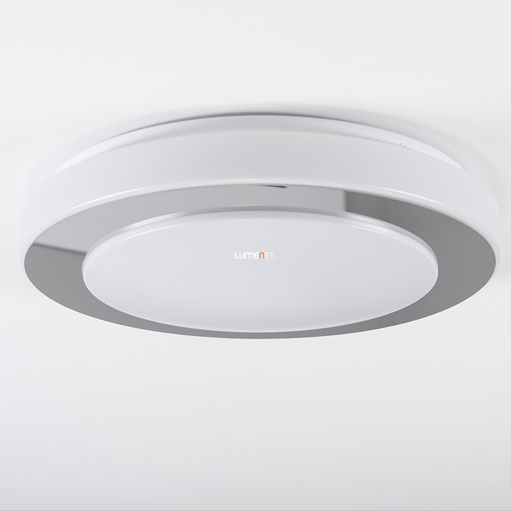 A Carpi Eglo 95283 kerek mennyezeti LED lámpa modern megjelenésével és kiváló műszaki paramétereivel ideális választás lakásvilágítási megoldásokhoz. A lámpatest 16 W-os beépített LED modullal működik, amely 2220 lumen fényáramot biztosít melegfehér, 3000 K színhőmérséklettel. A lámpa nem szabályozható, így állandó, egyenletes fényt nyújt. Az IP44 védettség lehetővé teszi a lámpa alkalmazását párásabb helyiségekben is, például fürdőszobában. A termék átmérője 385 mm, anyaga acél és műanyag, színe fehér és ezüst, ami letisztult, modern stílust kölcsönöz a térnek. A lámpa átlagos élettartama 25 000 óra, amely hosszú távú, megbízható működést garantál. A csomagolás méretei: 40 x 40 x 9 cm, tömege 1,56 kg.