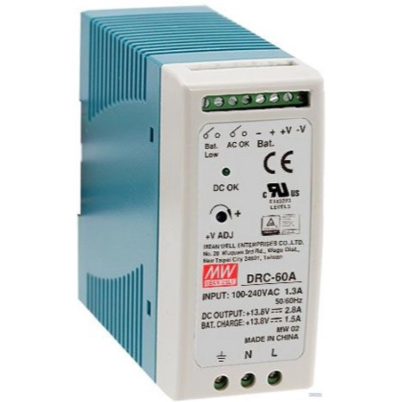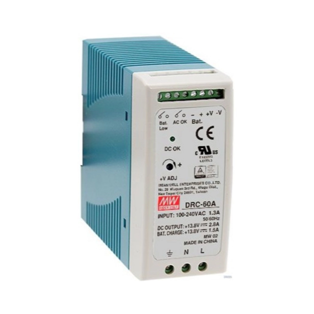 Vin: 90~264VAC vagy 127-370VDC, Vout: 13,8VDC/4,3A a tápegység kimeneten , 13,8VDC/1,5A az akkumulátor töltő kimeneten, P: 60W