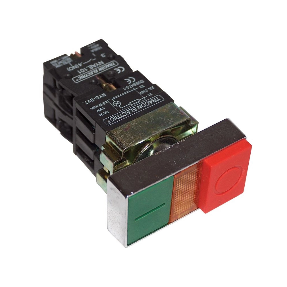Kettős BE-KI nyomógomb, fémalap, zöld+piros kiálló 1×NC+1×NO, 3A NYKK8475 Tracon