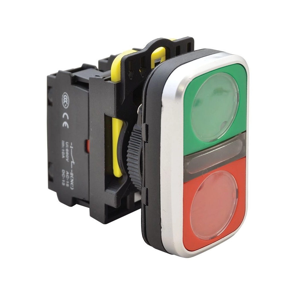 Kettős BE-KI nyomógomb, I-O, piros 1×NO+1×NC, 5A IP65 NYG3-D Tracon