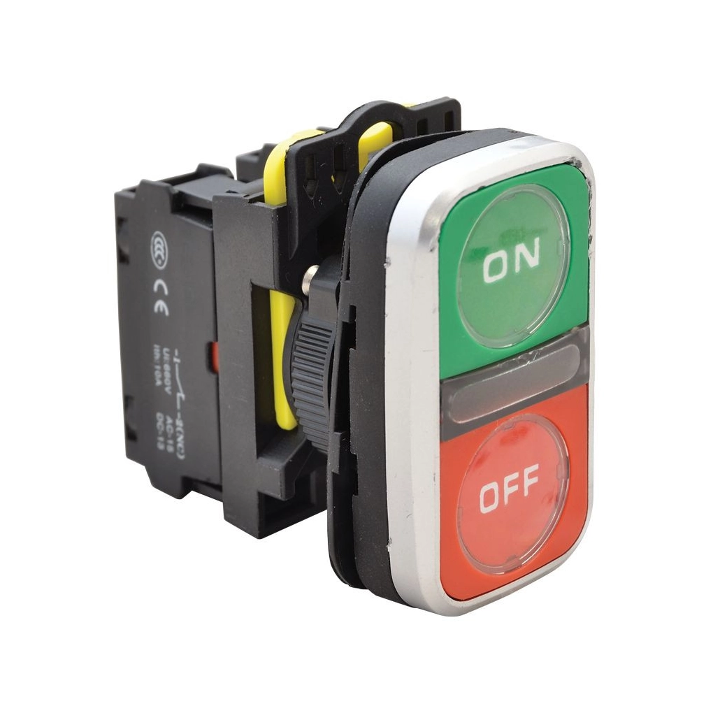 Kettős világító BE-KI nyomógomb, ON-OFF, zöld+piros 1×NO+1×NC, 5A,IP65 NYG3-DL2 Tracon