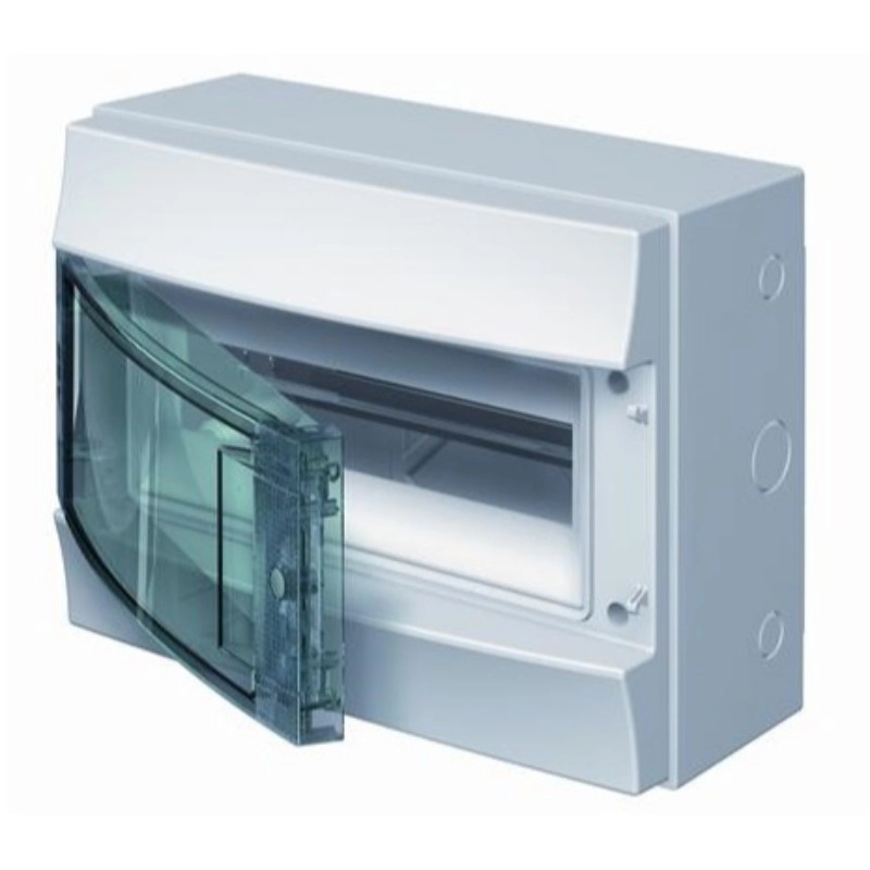 Kiselosztó falonkívüli 1soros, 12 modulos átlátszó ajtóval IP65 sín nélkül ABB Mistral65 1SL1202A00