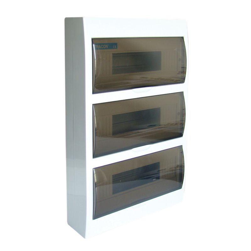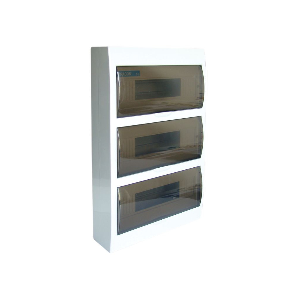 Kiselosztó falonkívüli 3soros, 42 modulos átlátszó ajtóval IP40 PE/N sínnel EDFK-14/3 Tracon