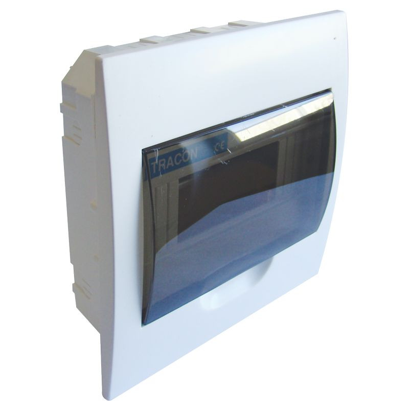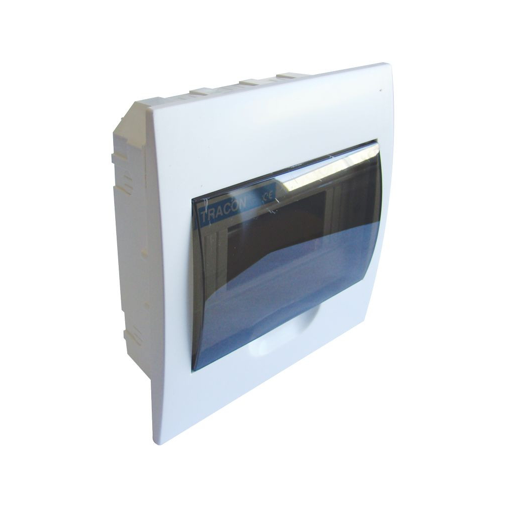 Tracon kiselosztó süllyesztett 1 soros, 8 modulos átlátszó ajtóval IP40 PE/N sínnel EDS-8/1