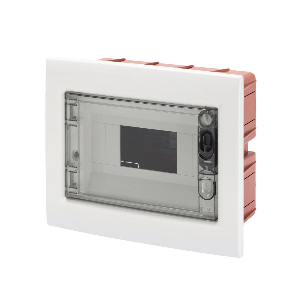 Kiselosztó süllyesztett 1soros, 8 modulos átlátszó ajtóval IP40 PE/N sínnel GW40604BS